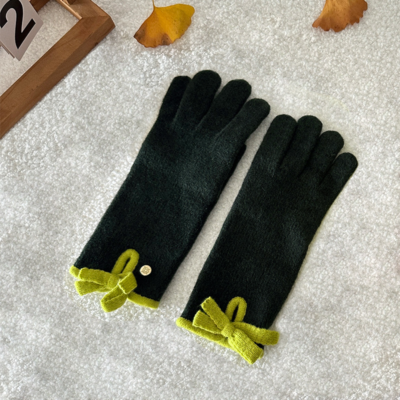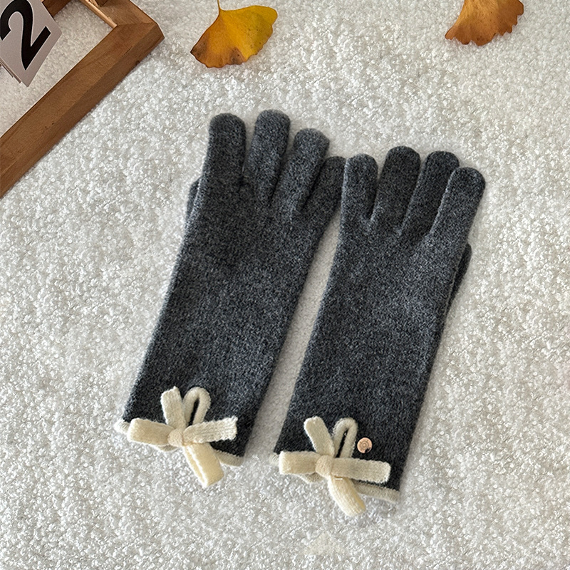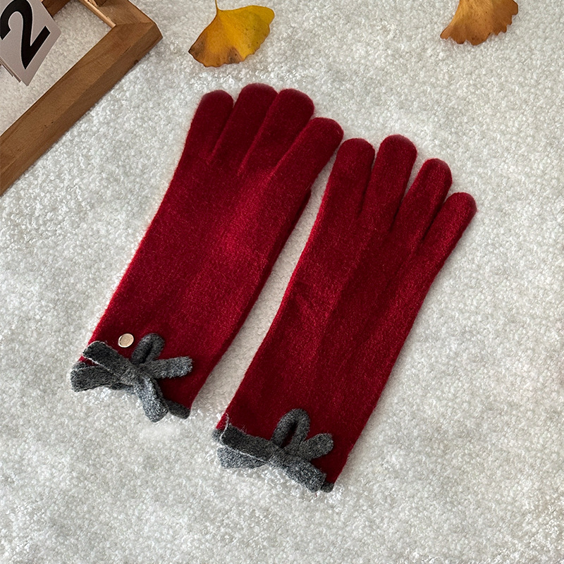 솔리드 컬러 활 장갑 겨울 여성 니트 양모 따뜻한 가을과 겨울 한국 스타일 터치 스크린 사이클링 장갑 방풍