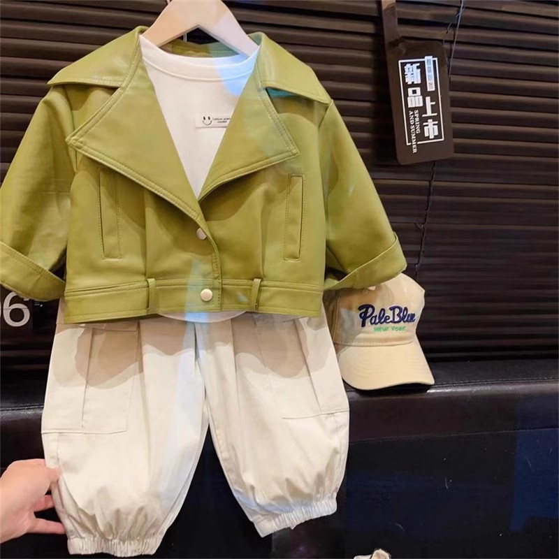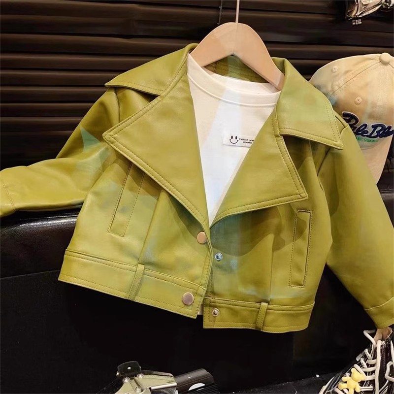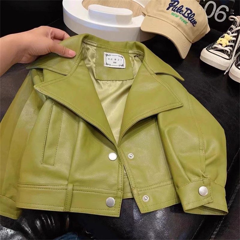 2024 한국 스타일 소녀 가죽 자켓 봄과 가을 프라이드 스트리트 보이즈 패션 서양식 대형 옷깃 방풍 재킷 탑스토어 가기