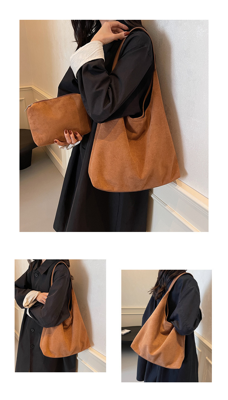 빈티지 소프트 스웨이드 빵 가방 여성의 2024 새로운 가을과 겨울 인기있는 대용량 어깨 가방 폭발성 버킷 가방