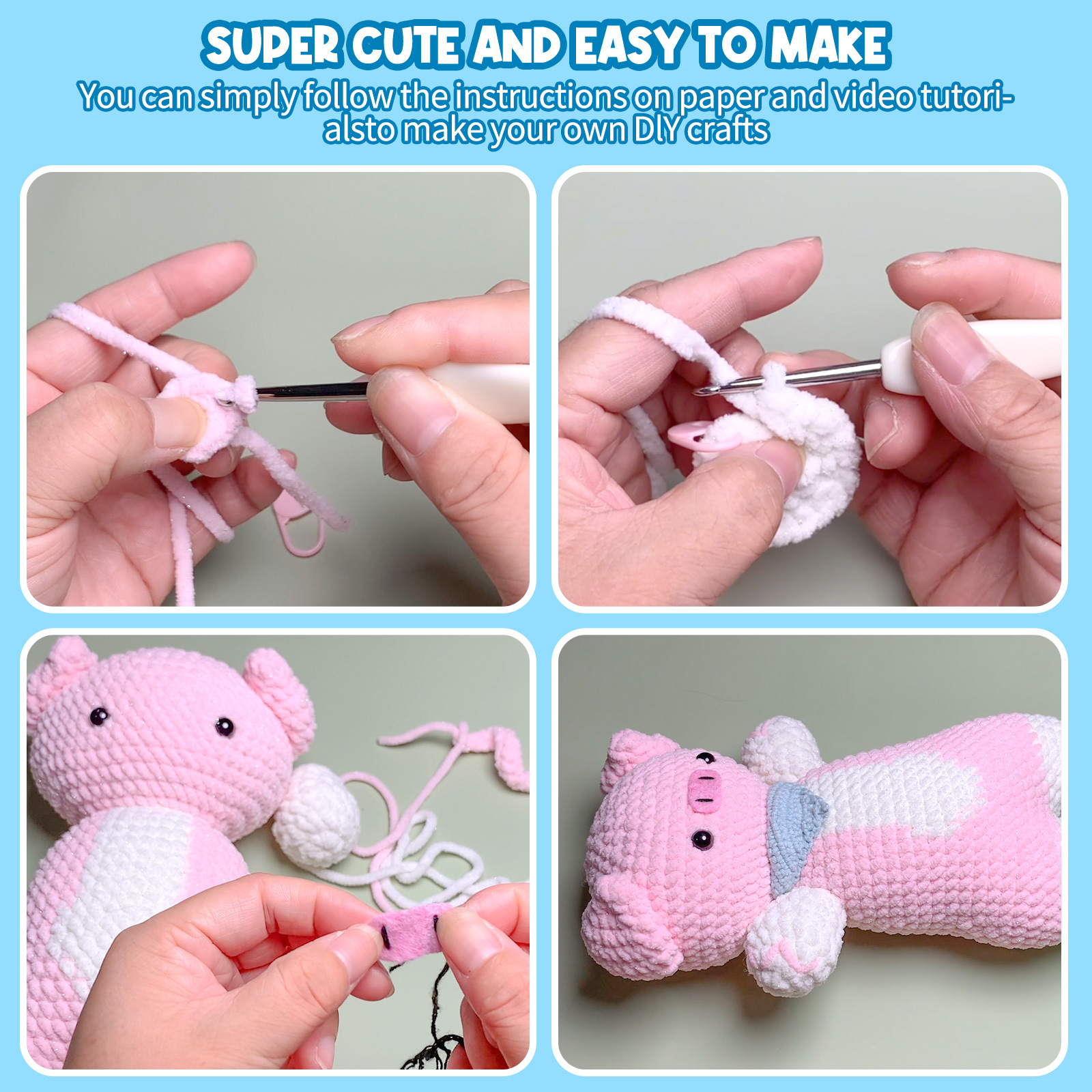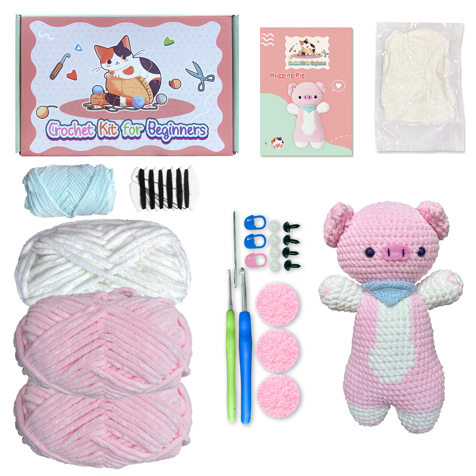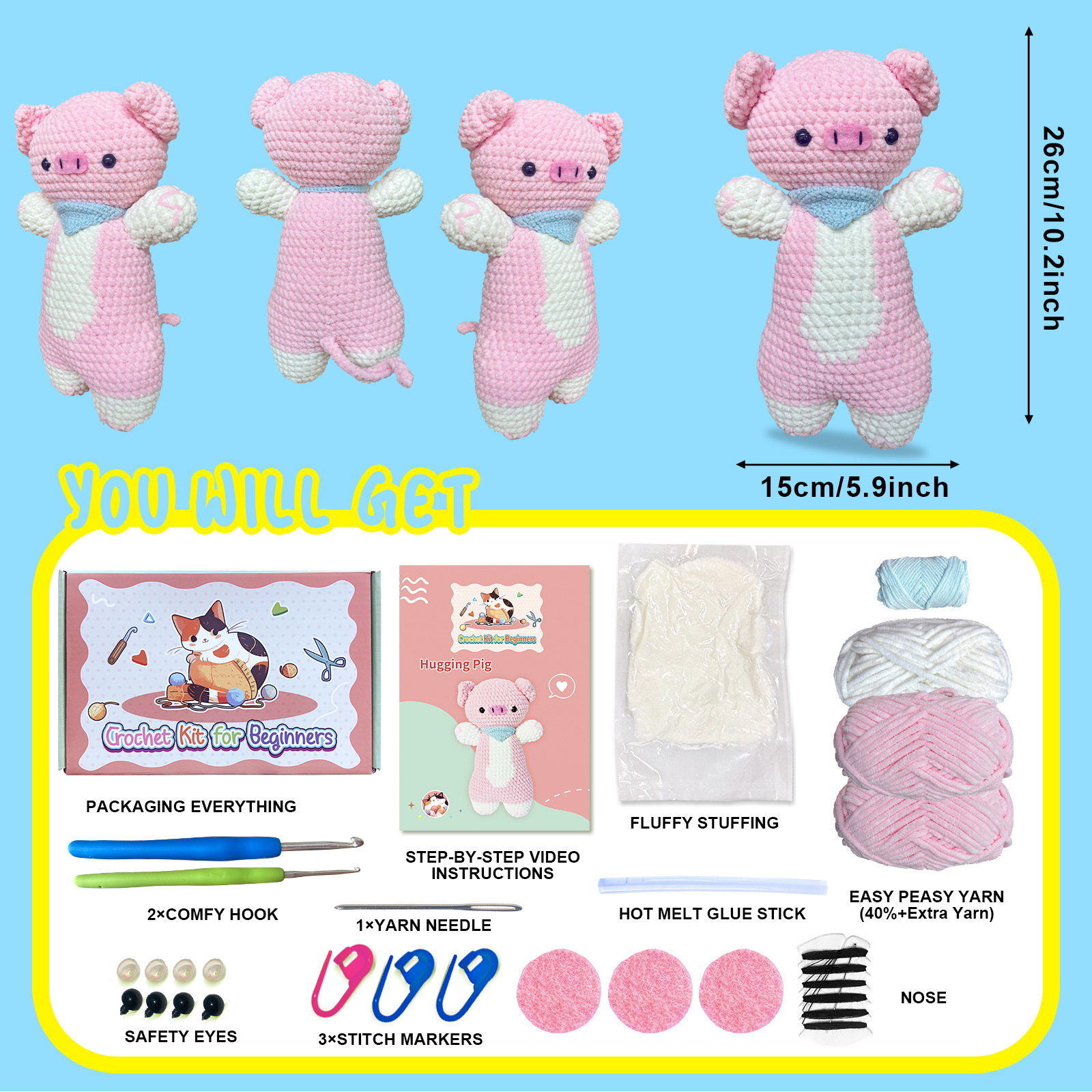 포용 핑크 돼지 시리즈 수제 크로 셰 뜨개질 소재 가방 DIY Schoolbag 키 체인 펜던트 장식 크로스 테두리스토어 가기