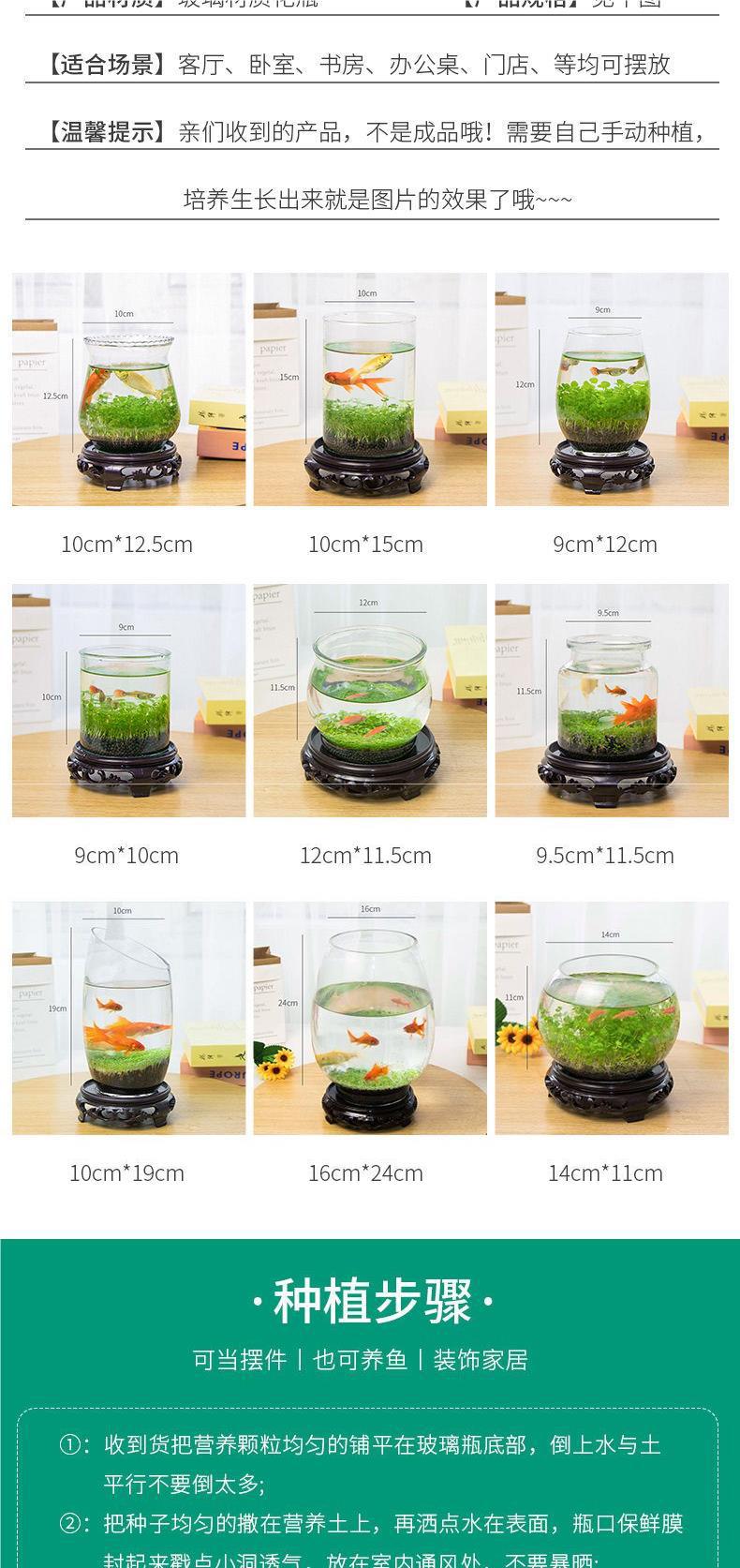 데스크탑 창조적 인 물 잔디 물고기 탱크 가구 거실 풍경 탱크 작은 장식 생태 유리 병 진짜 잔디 씨앗 물고기 탱크스토어 가기