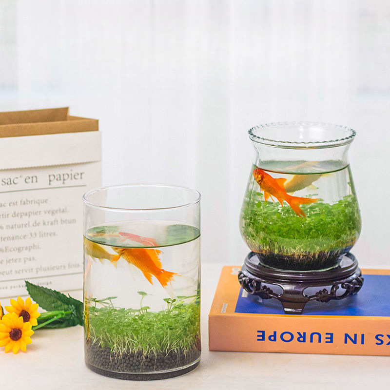 데스크탑 창조적 인 물 잔디 물고기 탱크 가구 거실 풍경 탱크 작은 장식 생태 유리 병 진짜 잔디 씨앗 물고기 탱크