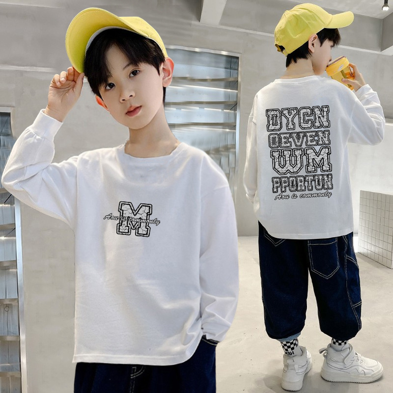 220g 순면 무거운 무게 아동복 소년 티셔츠 긴 소매 가을 어린이 큰 소년 코트 반소매 바닥 셔츠