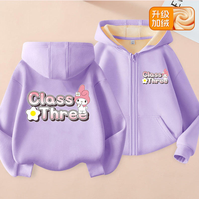 Kulomi 어린이 지퍼 코트 소녀의 가을과 겨울 카디건 기모 두꺼운 후드 스웨터 메로 코트 트렌디스토어 가기