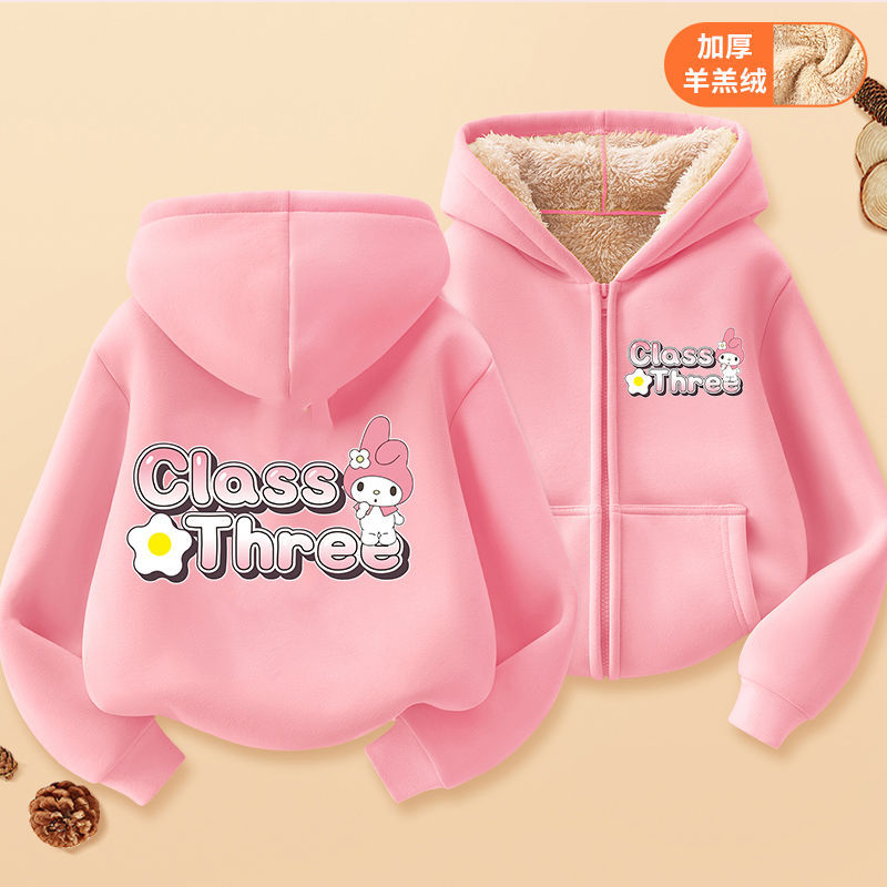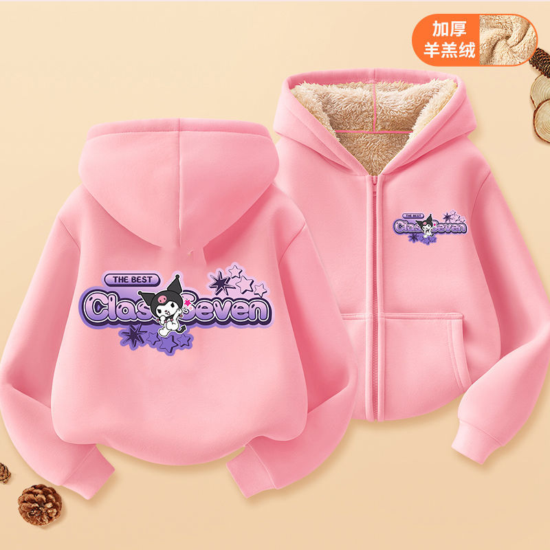Kulomi 어린이 지퍼 코트 소녀의 가을과 겨울 카디건 기모 두꺼운 후드 스웨터 메로 코트 트렌디
