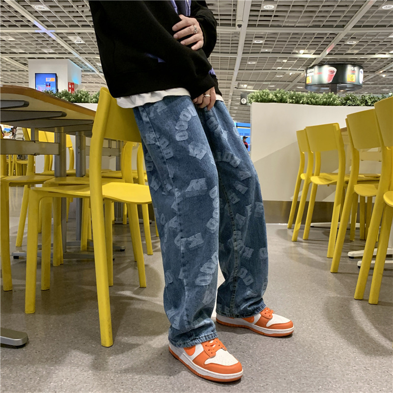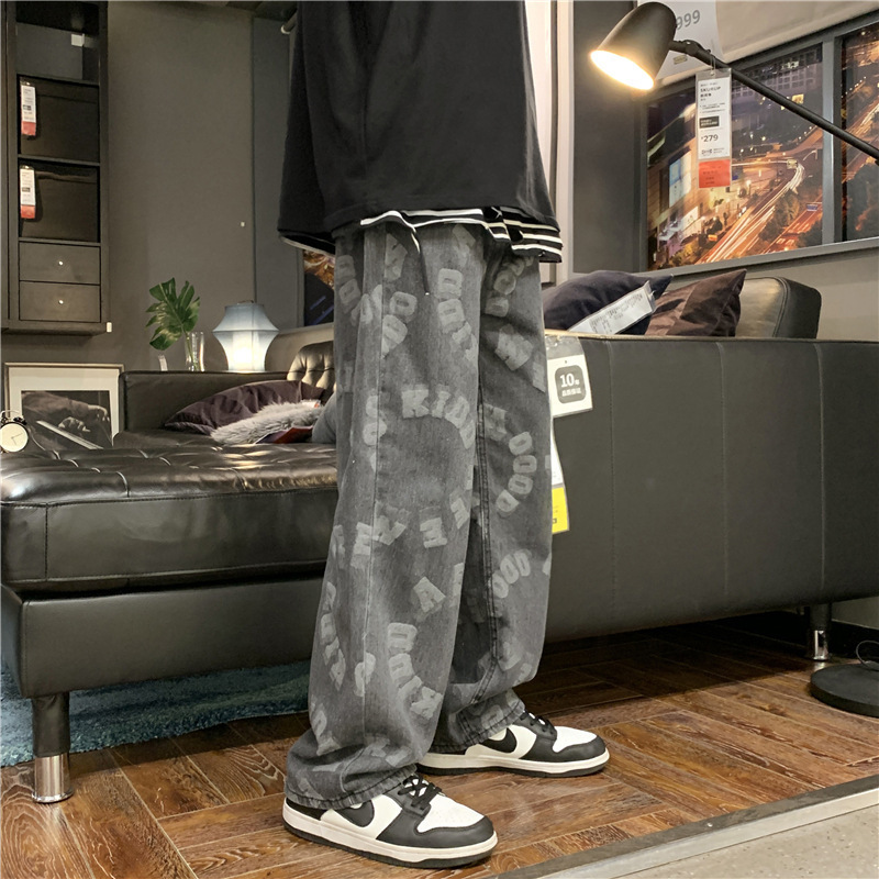 남성용 청바지 봄 새로운 유행 유행 브랜드 남성 바지 느슨한 스트레이트 와이드 레그 하라주쿠 스타일 캐주얼 긴 바지
