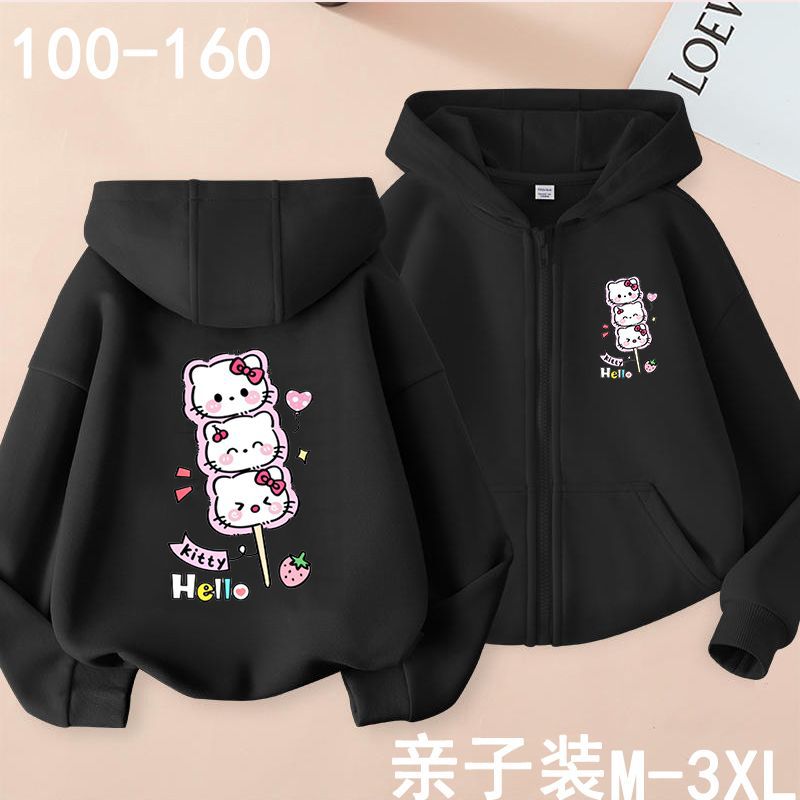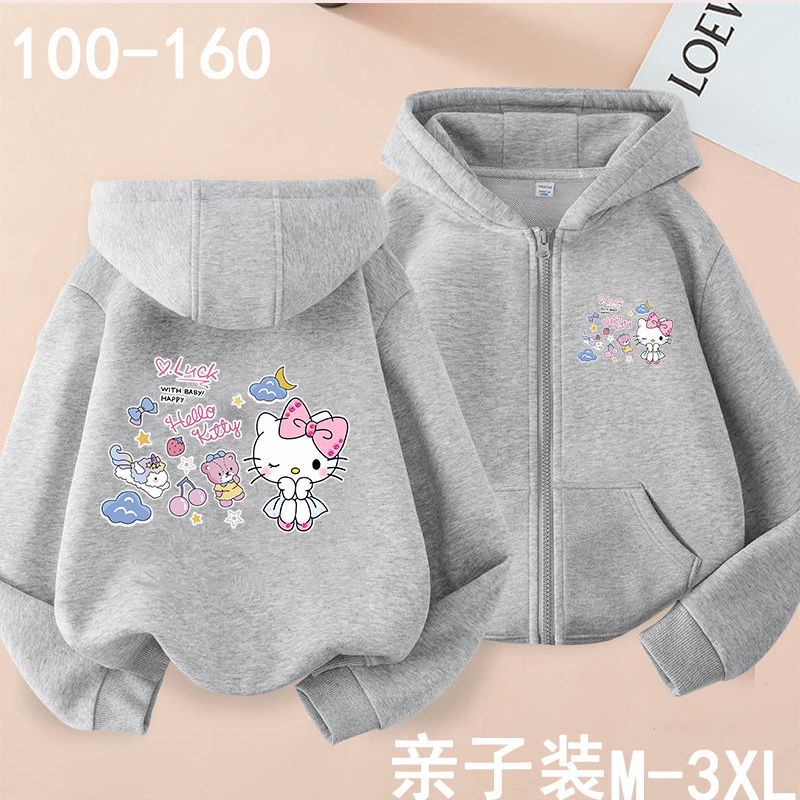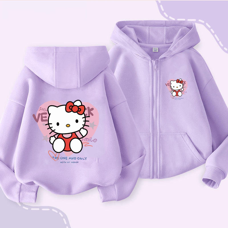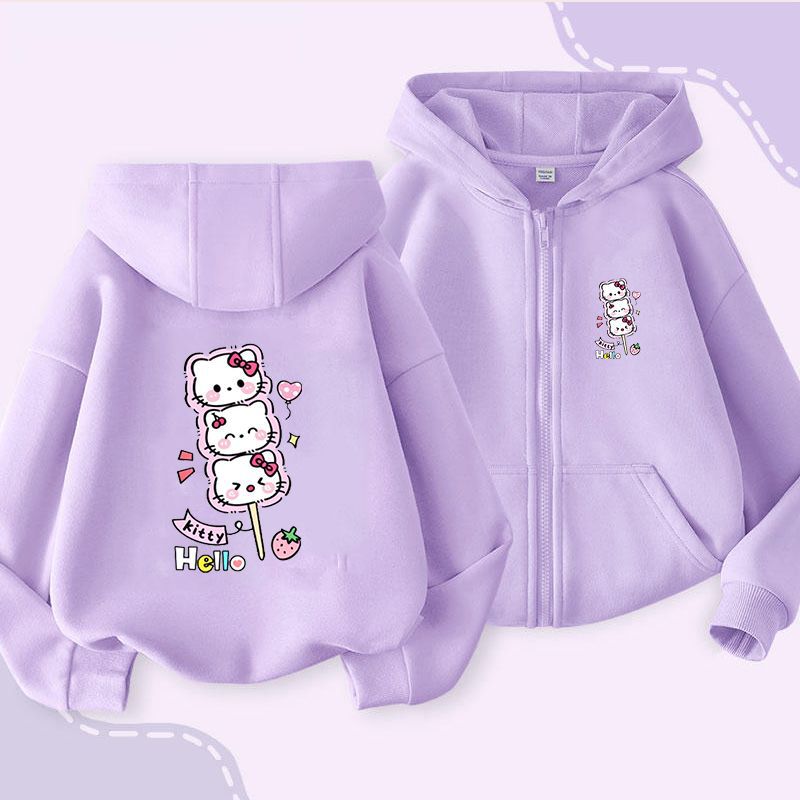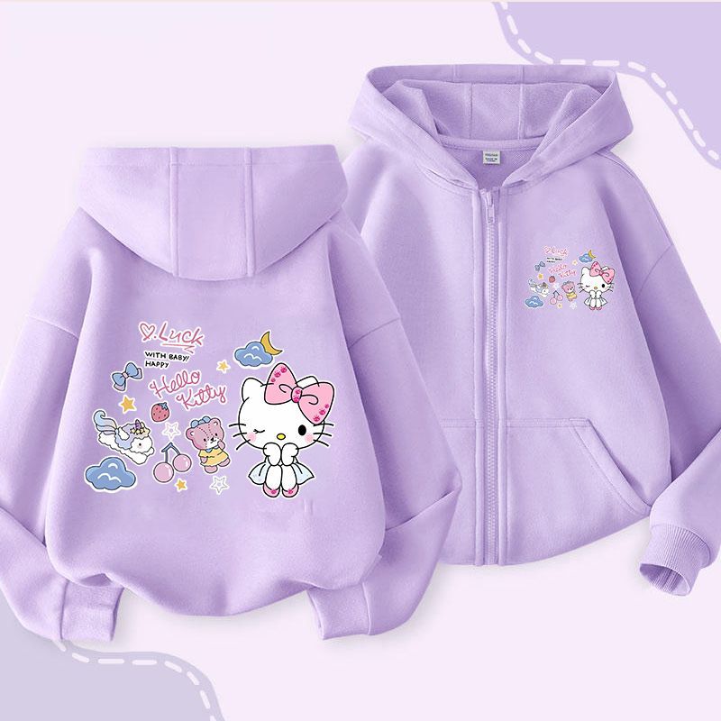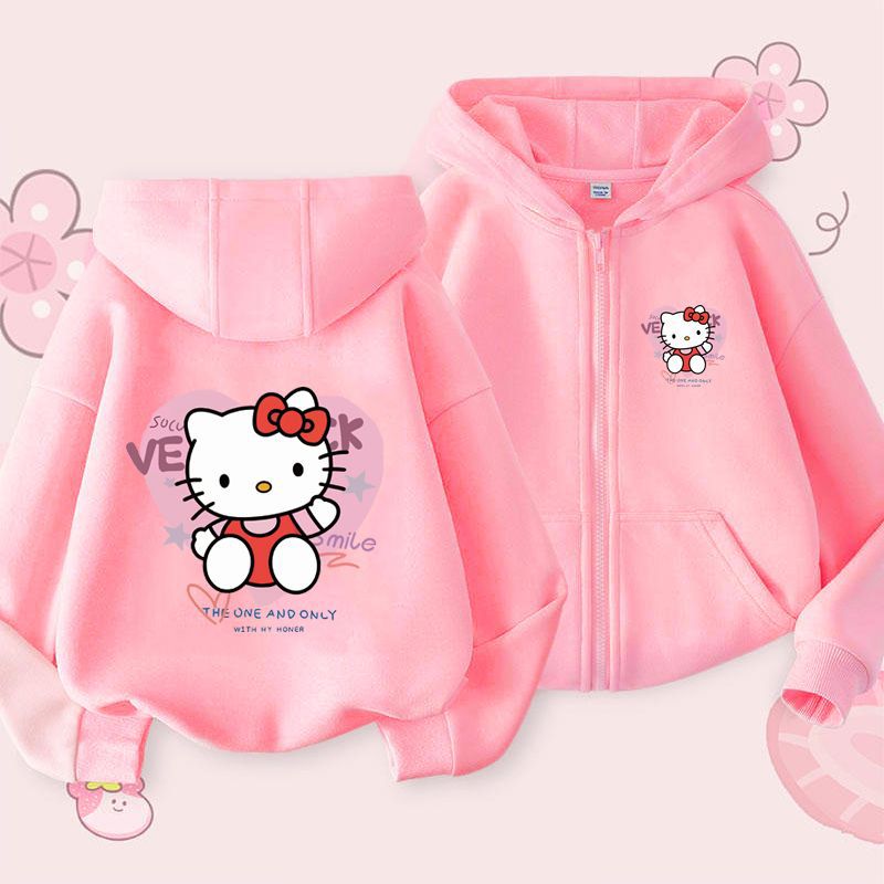 헬로 키티 소녀 코트 어린이 가을 겨울 새로운 2024 지퍼 후드 카디건 세련된 헬로 키티 코트스토어 가기