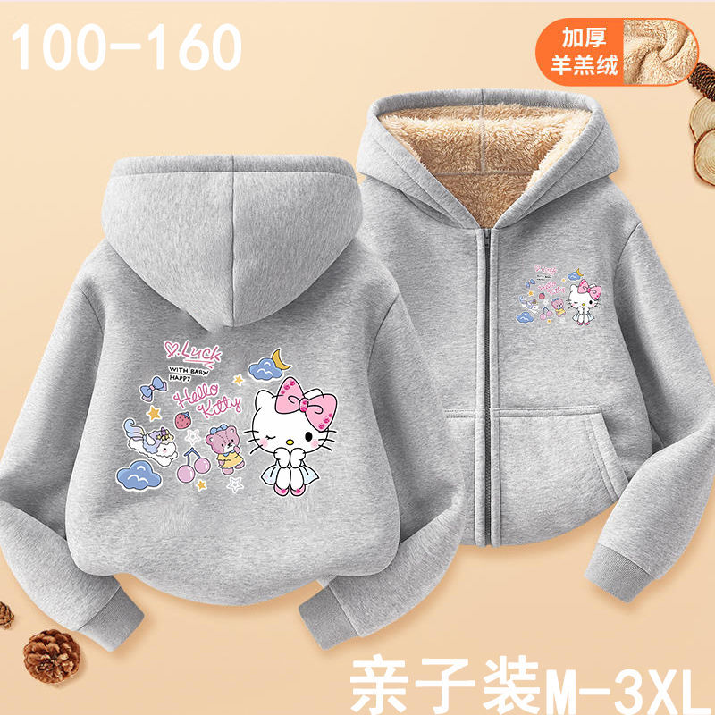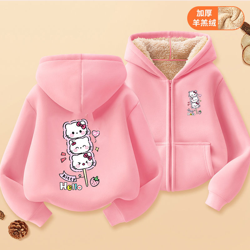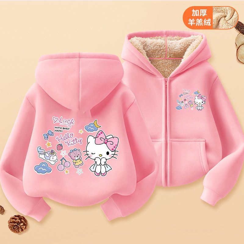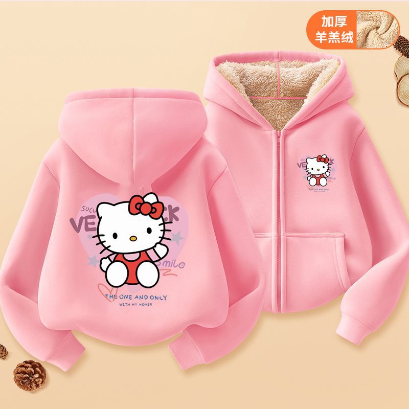 헬로 키티 소녀 코트 어린이 가을 겨울 새로운 2024 지퍼 후드 카디건 세련된 헬로 키티 코트