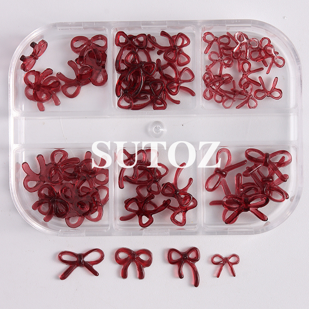 2024 새로운 네일 아트 쥬얼리 6 박스 레드 보우 네일 3 차원 축제 크기 장식 액세서리스토어 가기