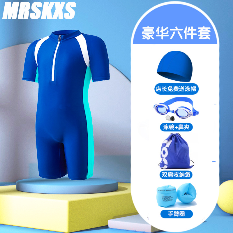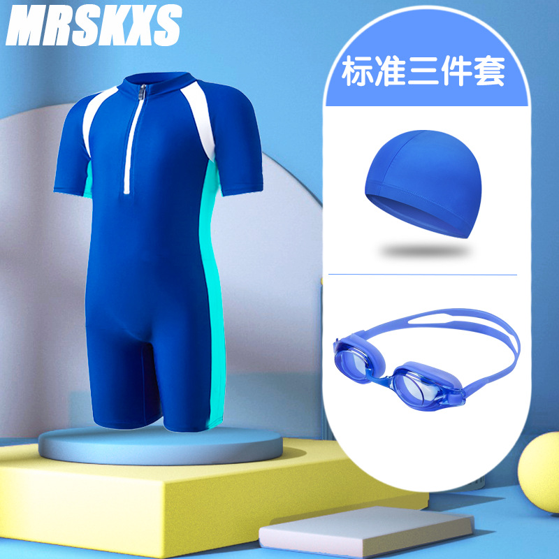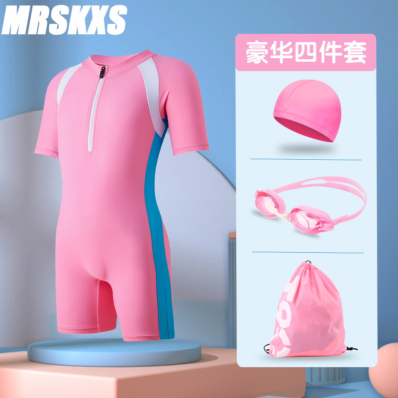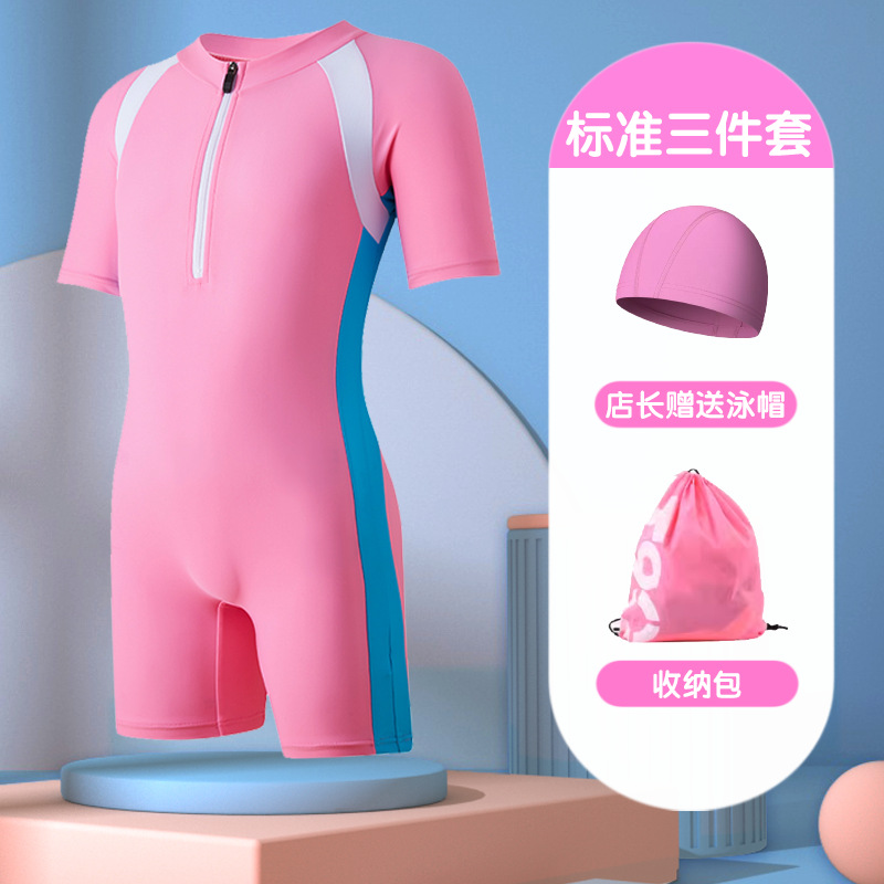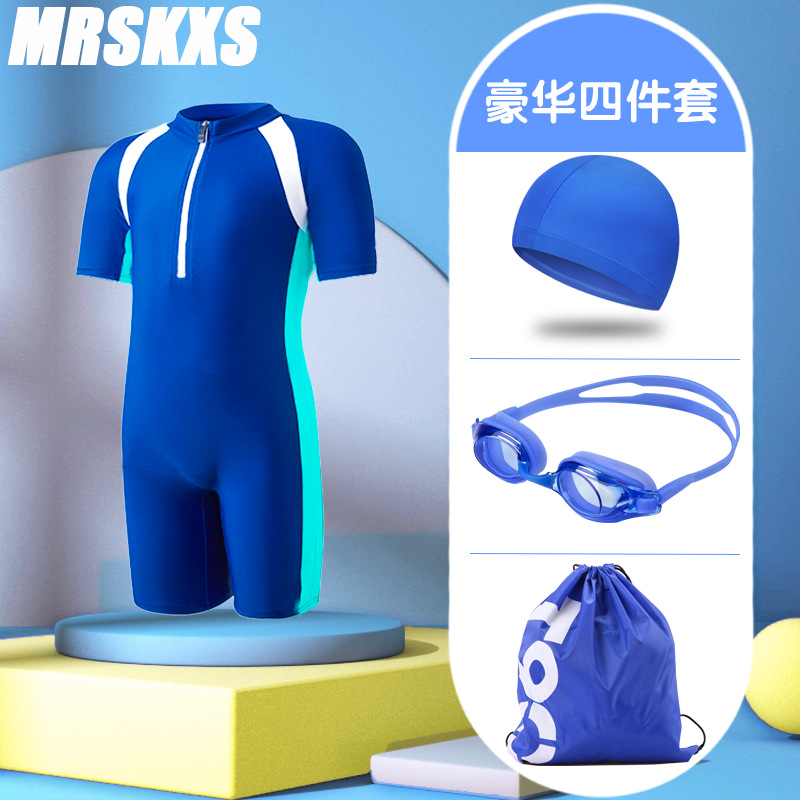 선스크린 빠른 건조 원피스 수영복 여름 중대형 어린이 지퍼 수영복 남학생과 여학생 수납 배낭 수영 모자 세트스토어 가기