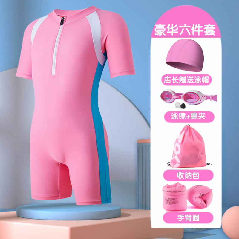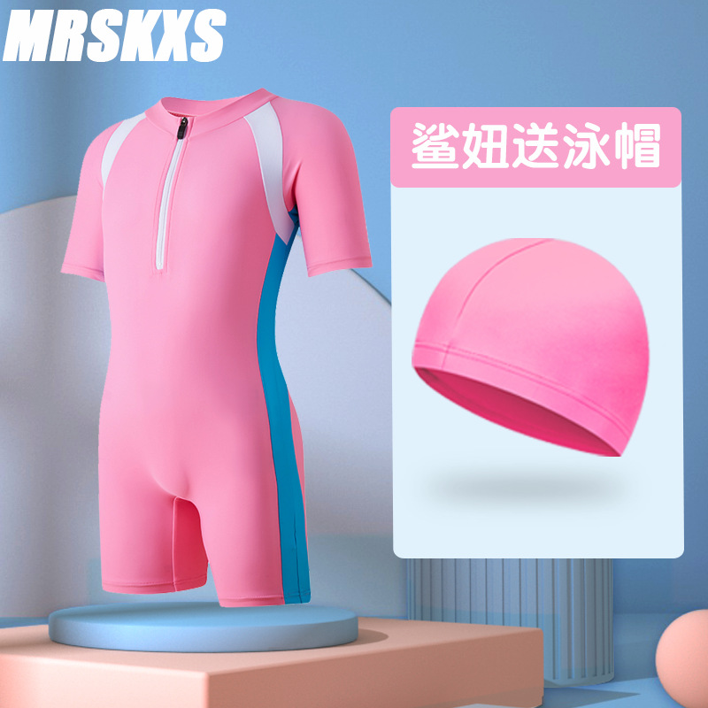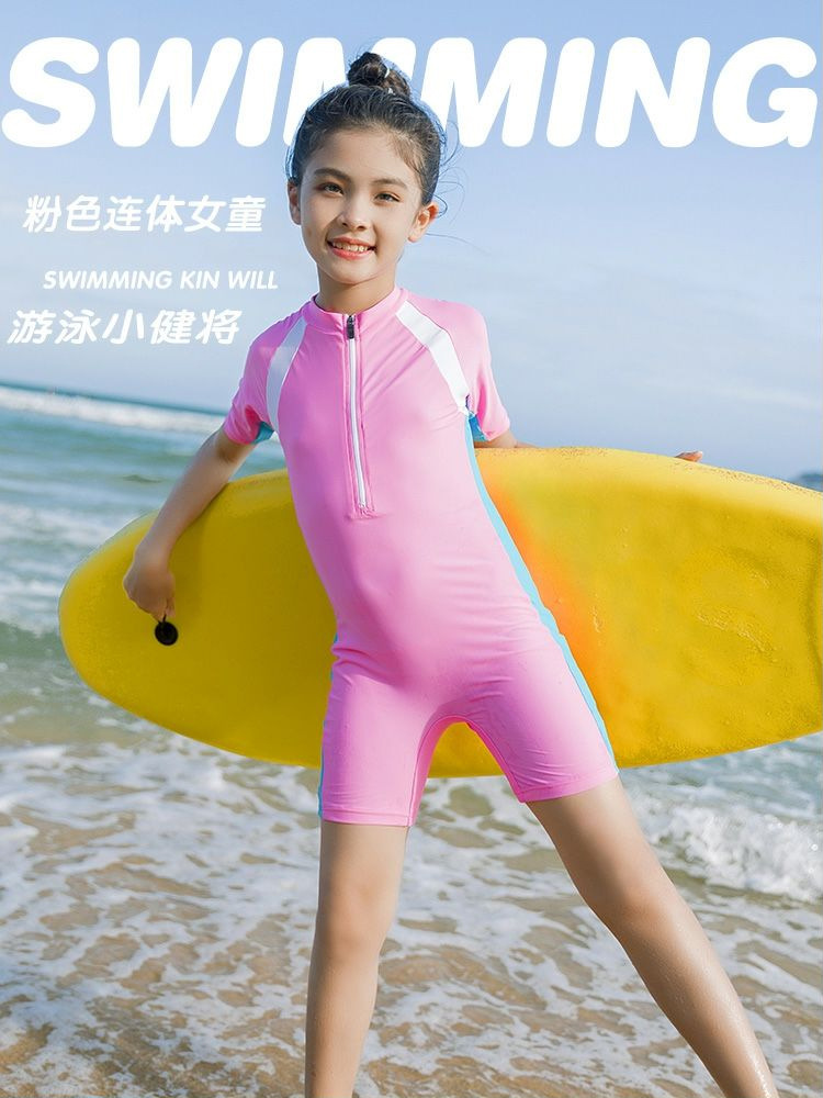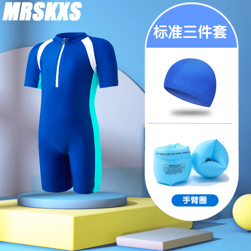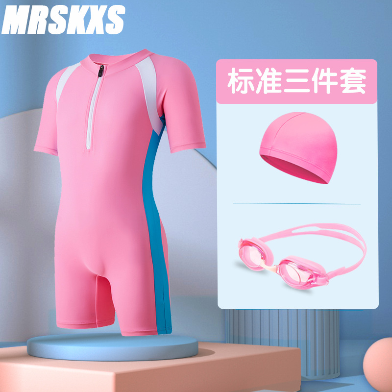 선스크린 빠른 건조 원피스 수영복 여름 중대형 어린이 지퍼 수영복 남학생과 여학생 수납 배낭 수영 모자 세트스토어 가기