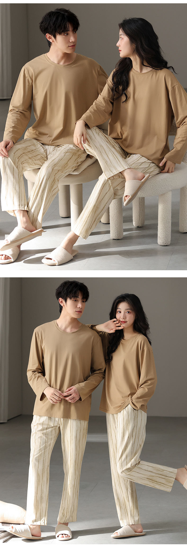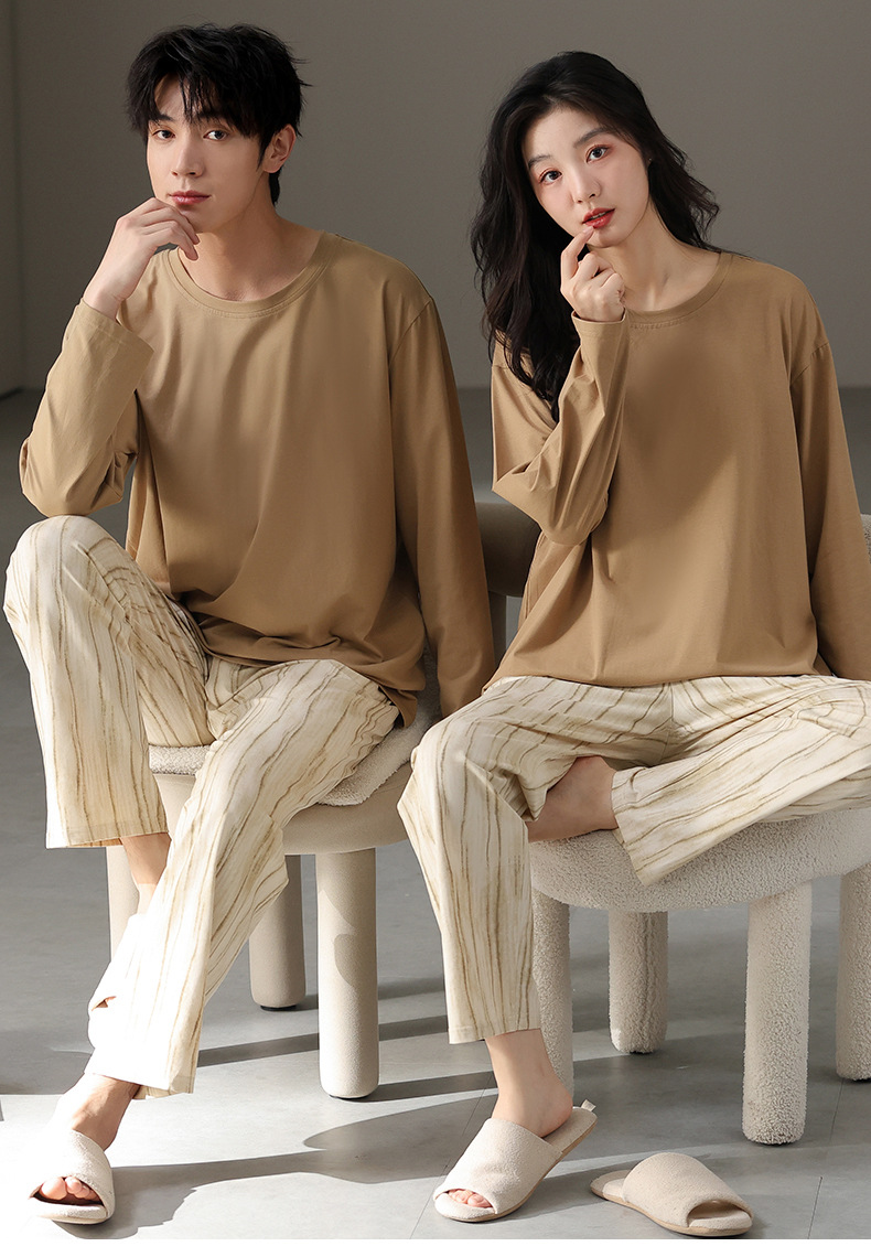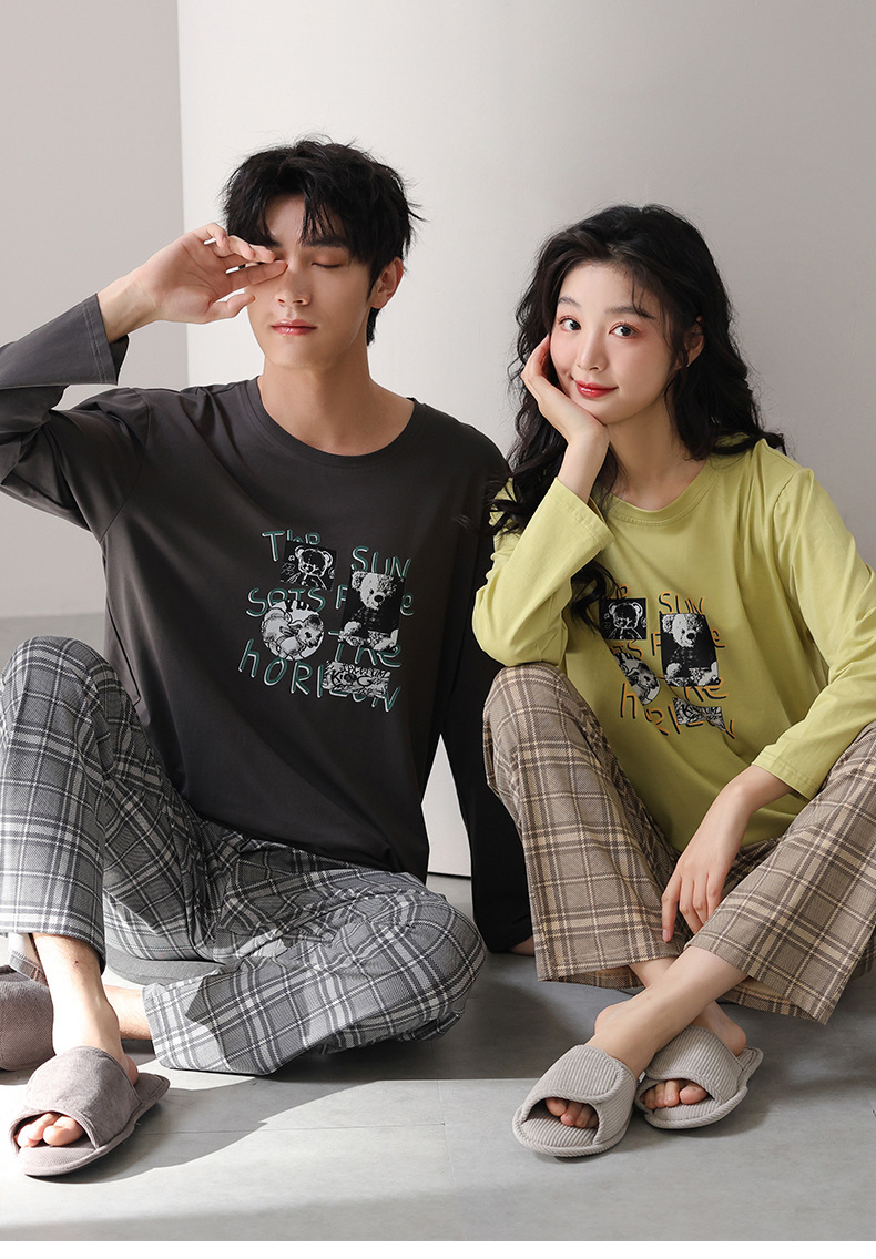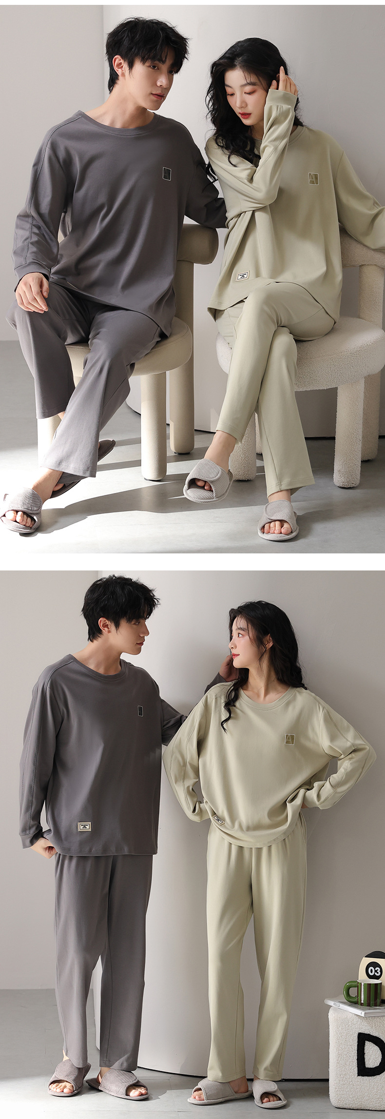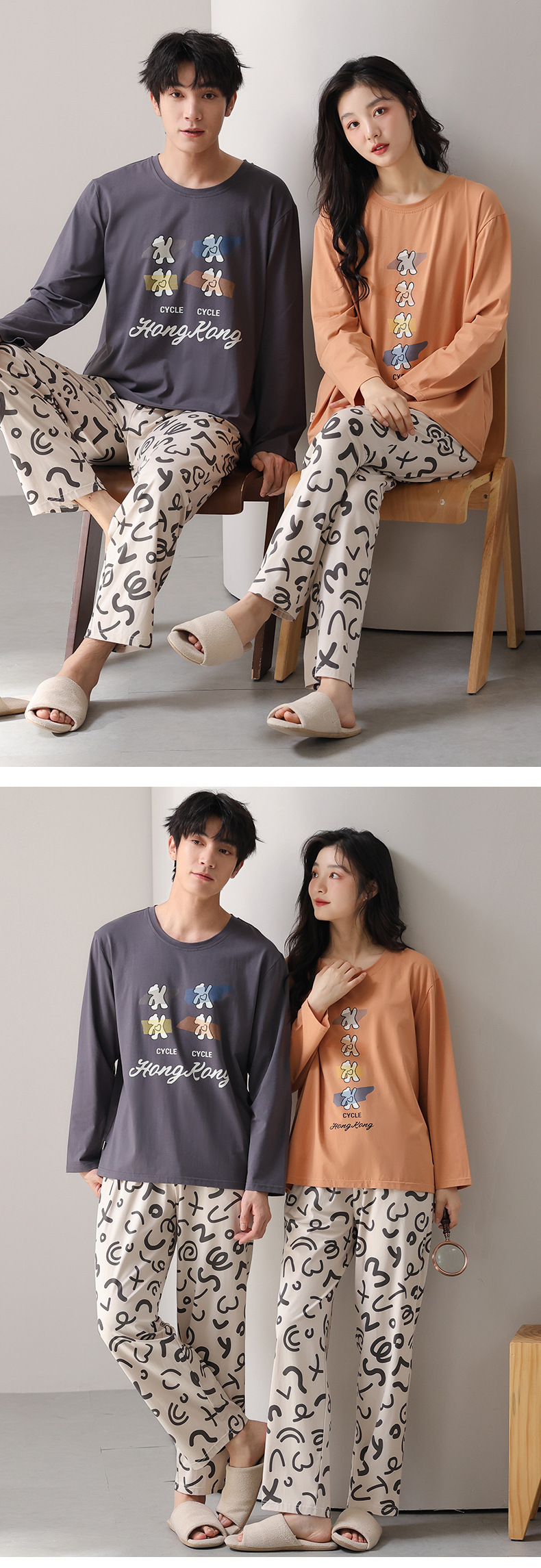 [가슴 패드 포함] 커플 잠옷 가을 겨울 신상 순면 여성 긴팔 루즈핏 남성 라이크라 면 홈웨어 세트스토어 가기