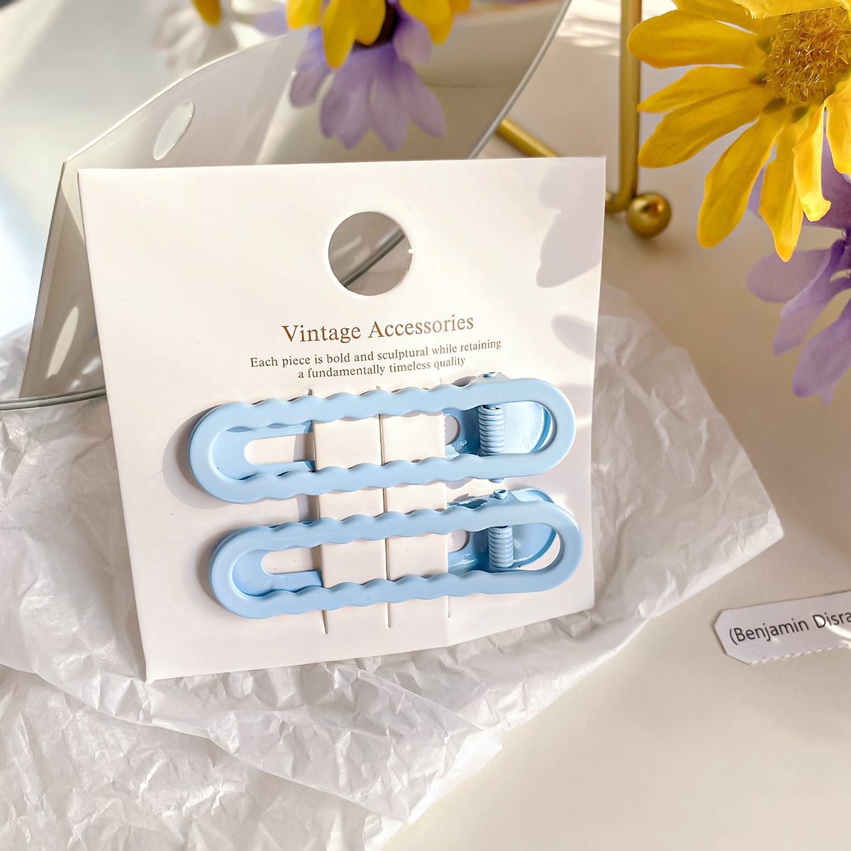 베이킹 페인트 하이 퀄리티 원활한 헤어핀 물결 모양 가장자리 U 자형 클립 캔디 컬러 귀여운 소녀 사이드 뱅 클립 DIY 헤어핀