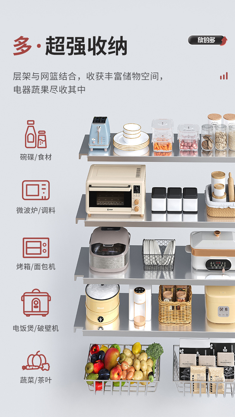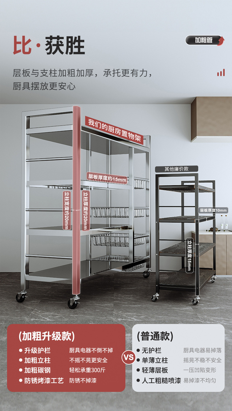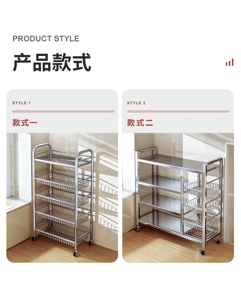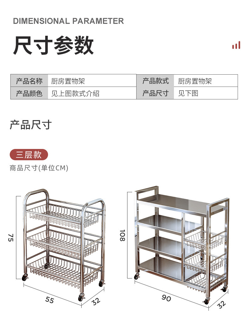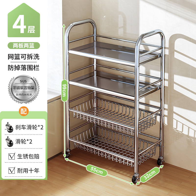 不锈钢菜篮子厨房置物架落地多层多功能微波炉锅具收纳架零食架子