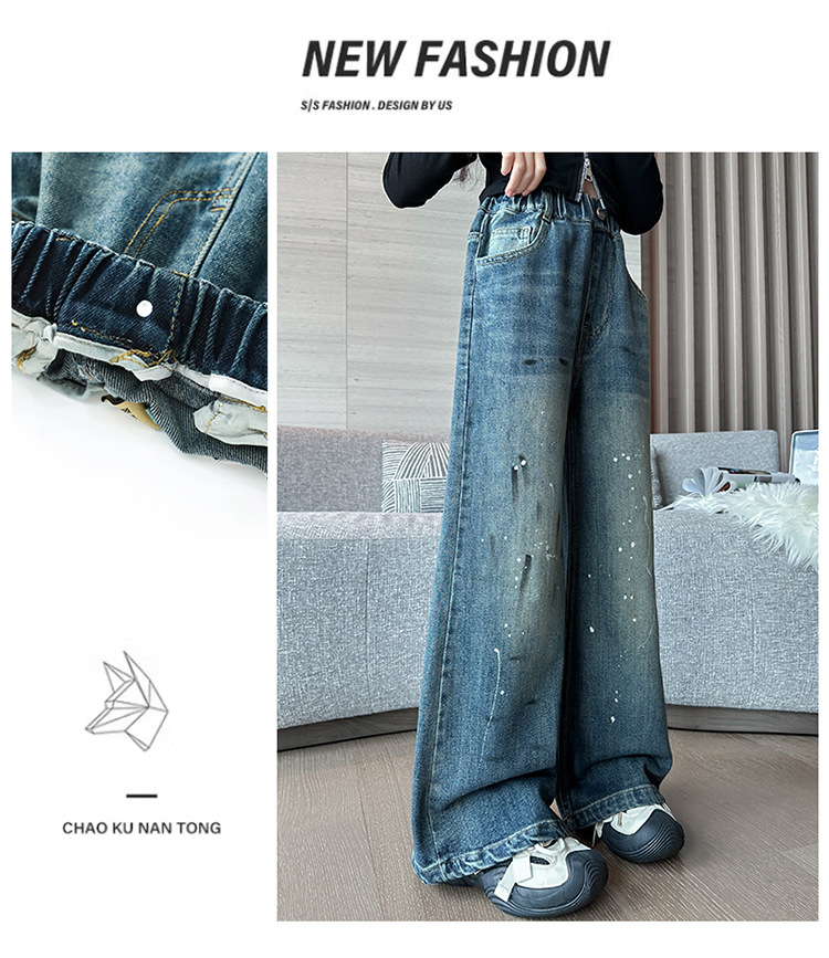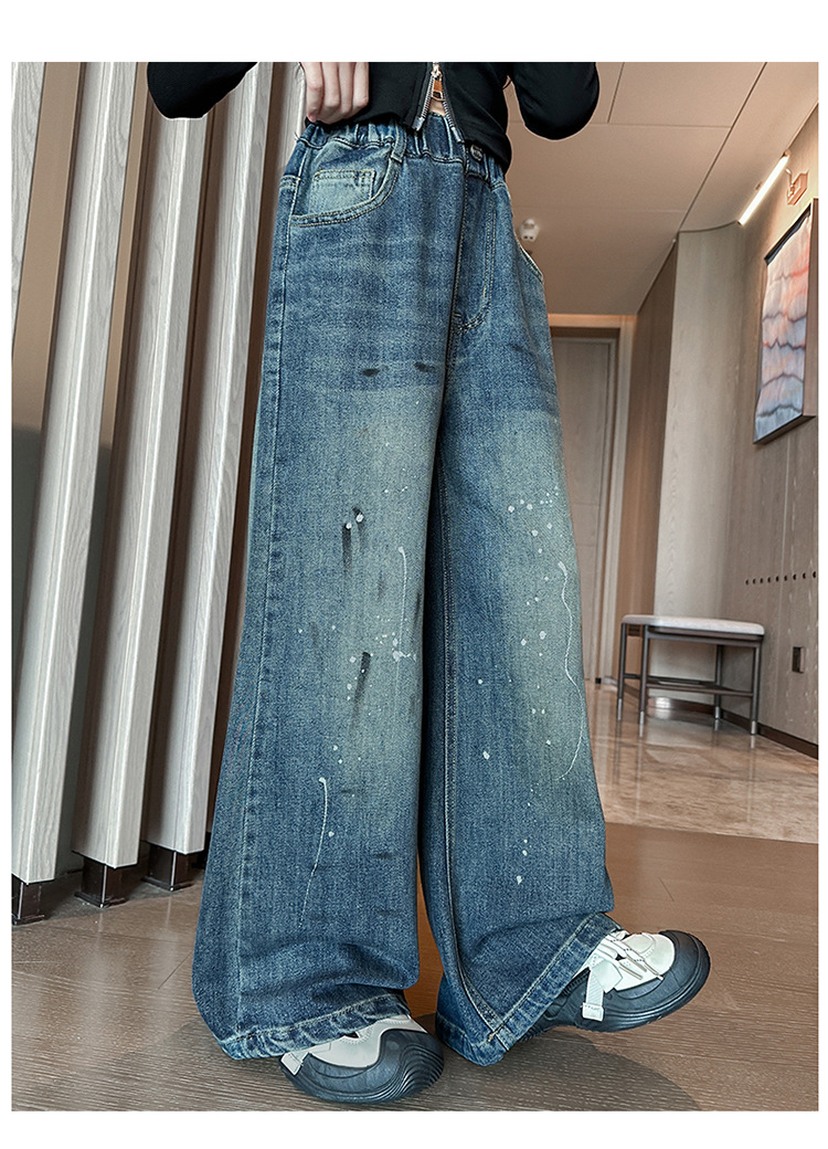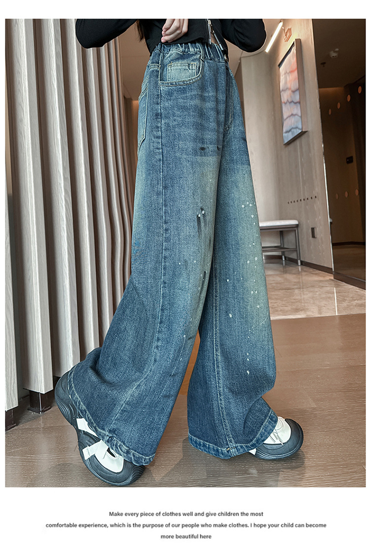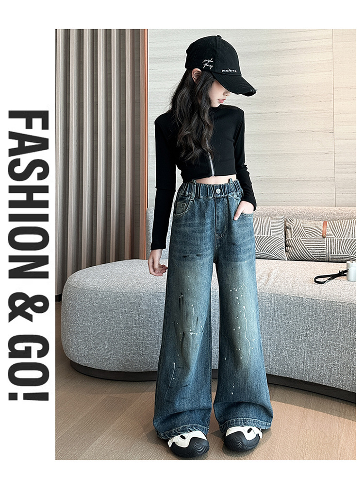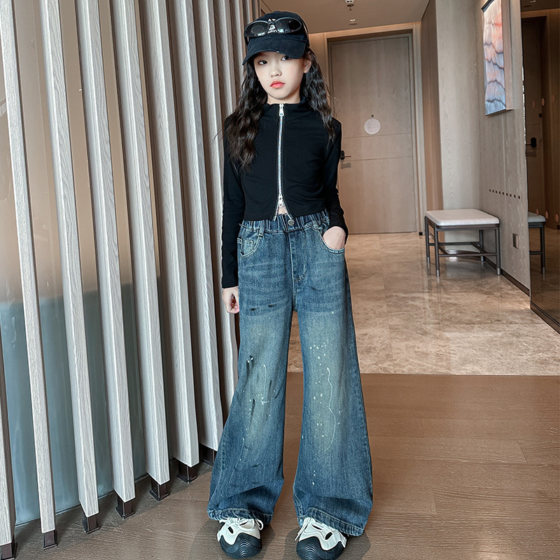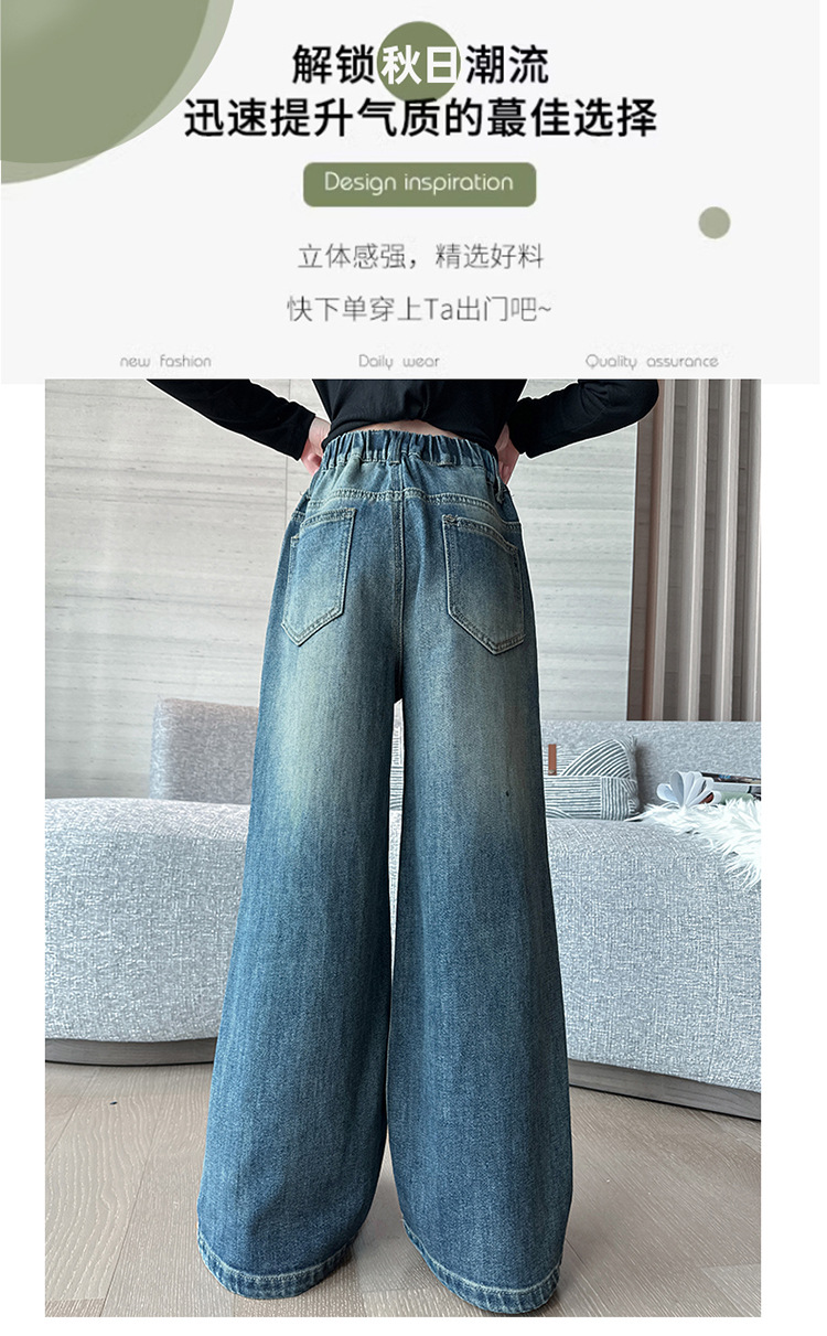 소녀 가을 스트레이트 다리 넓은 다리 바지 2024 새로운 서양 스타일 큰 소년 봄 가을 한국 스타일 유행 청바지 어린이 바지스토어 가기