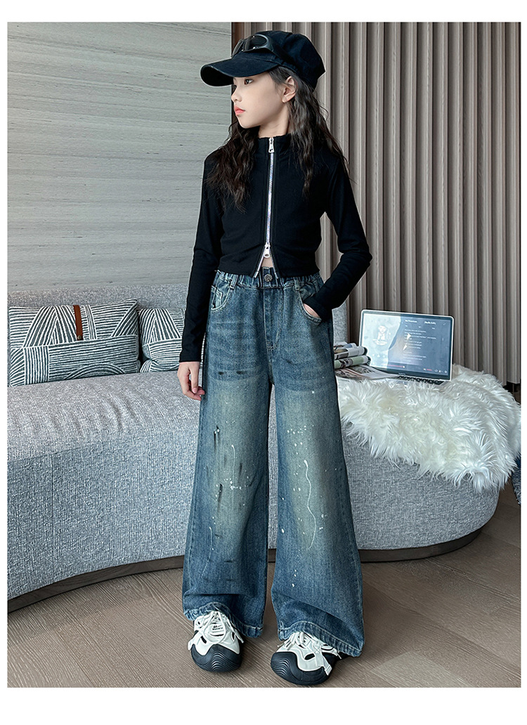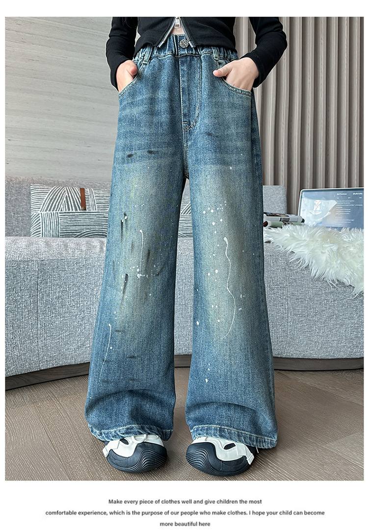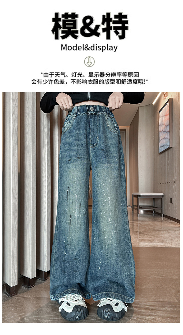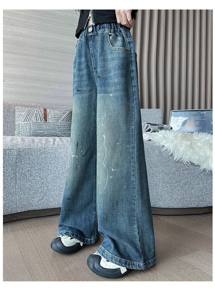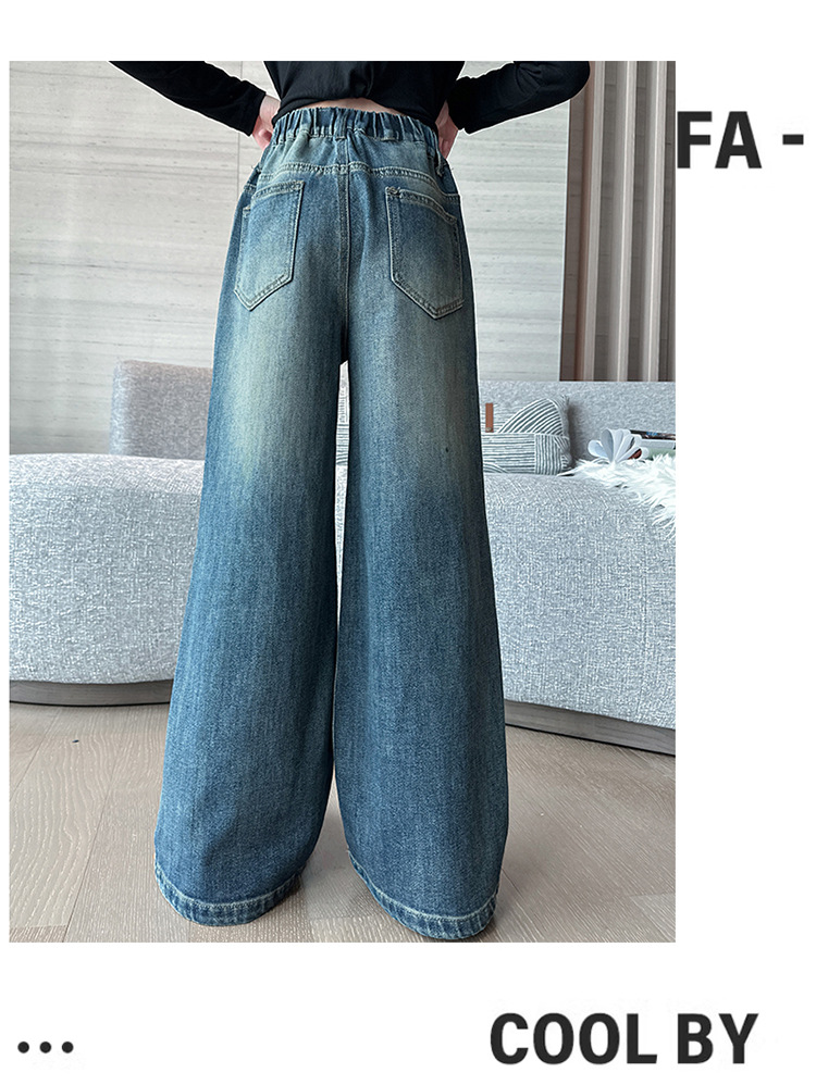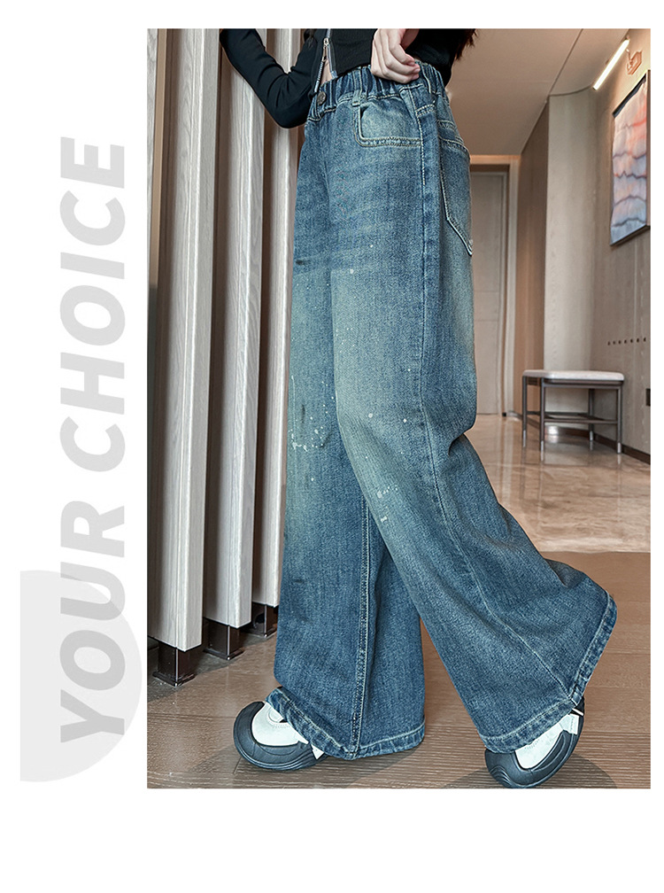소녀 가을 스트레이트 다리 넓은 다리 바지 2024 새로운 서양 스타일 큰 소년 봄 가을 한국 스타일 유행 청바지 어린이 바지스토어 가기