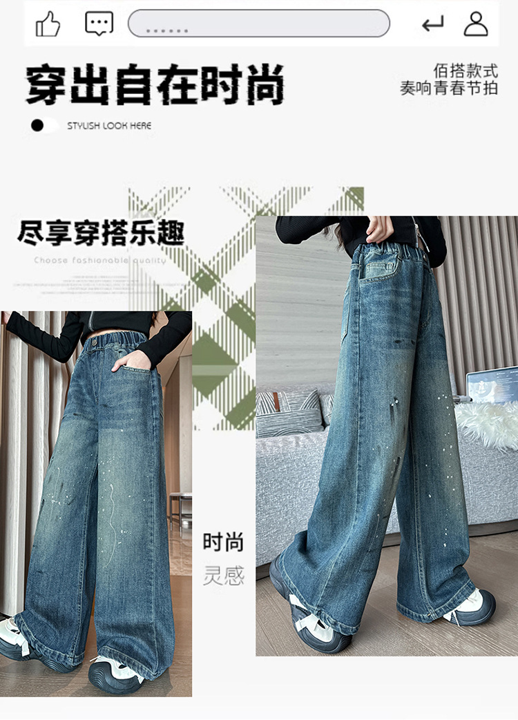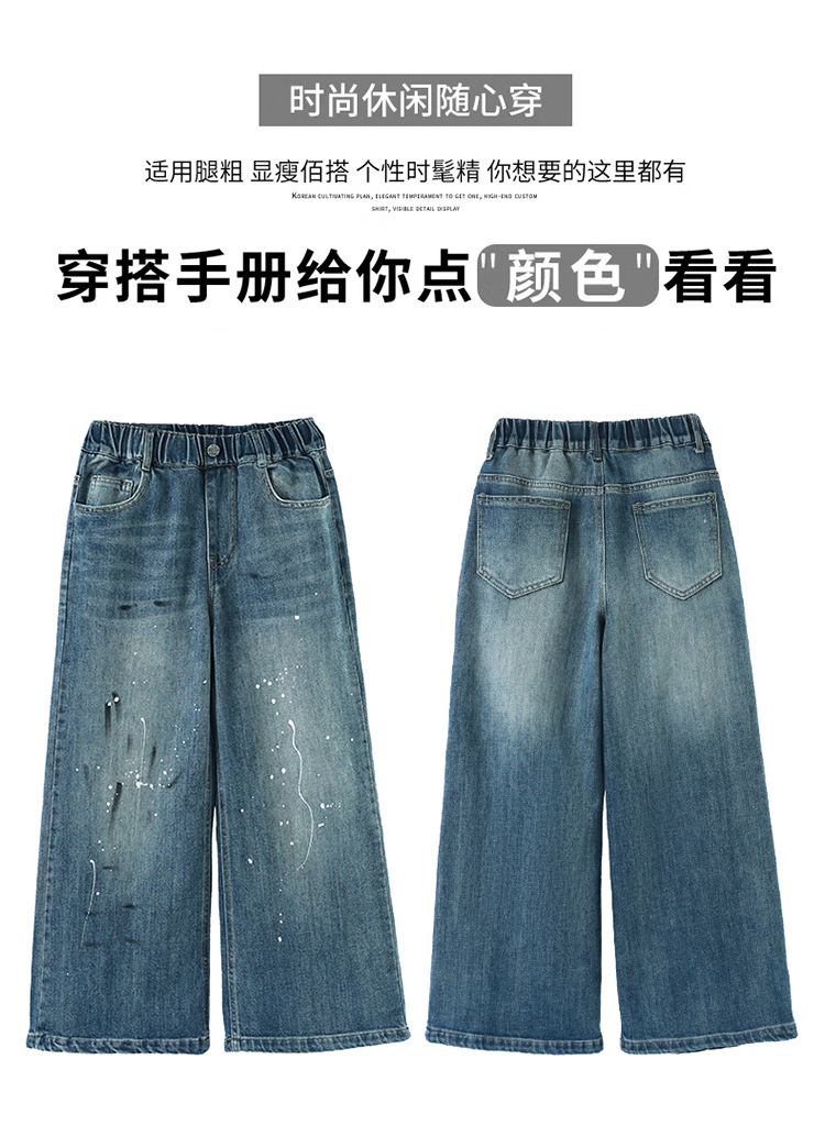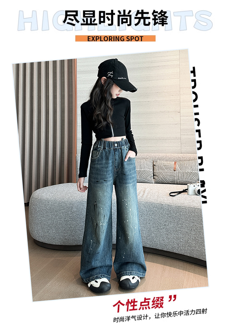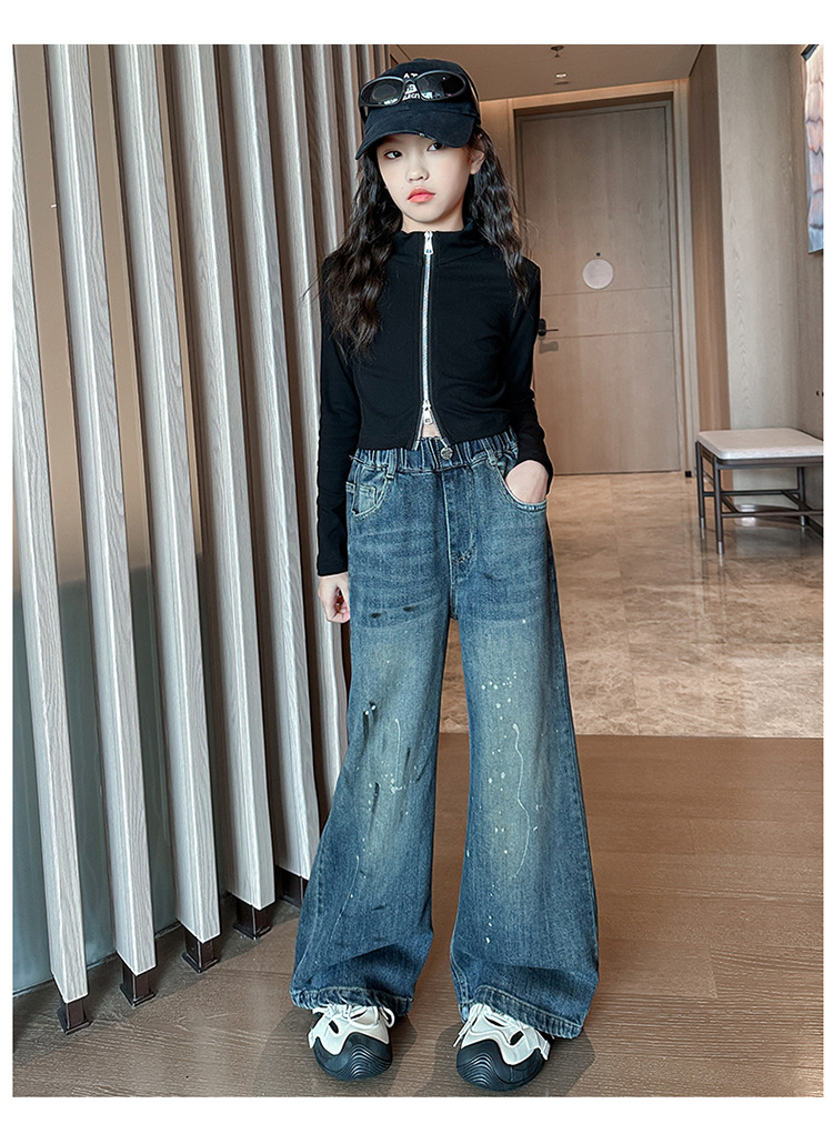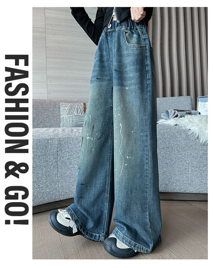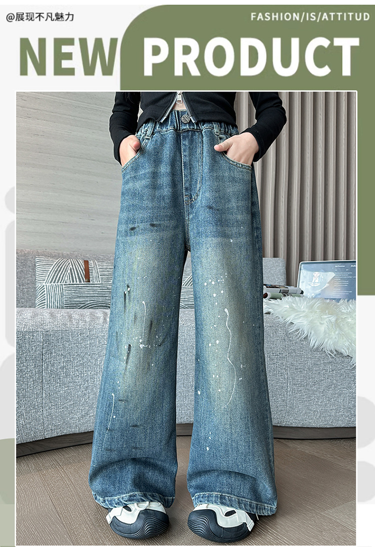 소녀 가을 스트레이트 다리 넓은 다리 바지 2024 새로운 서양 스타일 큰 소년 봄 가을 한국 스타일 유행 청바지 어린이 바지스토어 가기