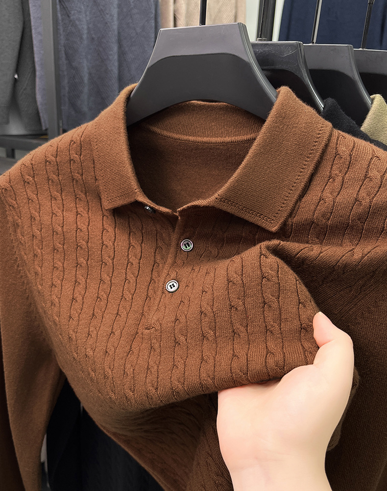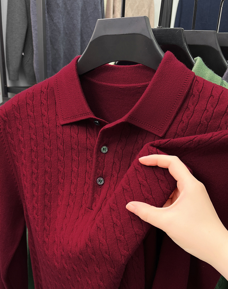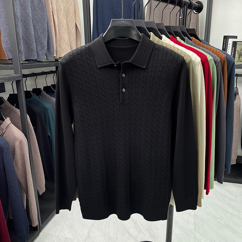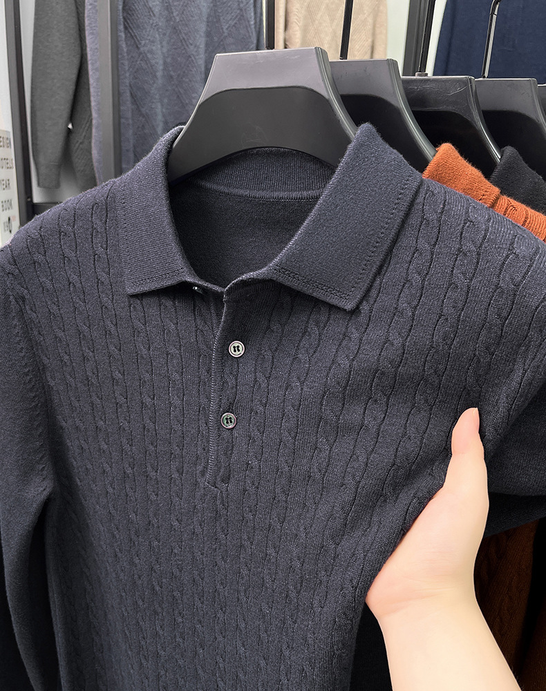 봄과 가을 옷깃 단색 스웨터 긴팔 폴로 셔츠 젊고 중년 남성 캐주얼 올 매치 니트 스웨터베이스 셔츠