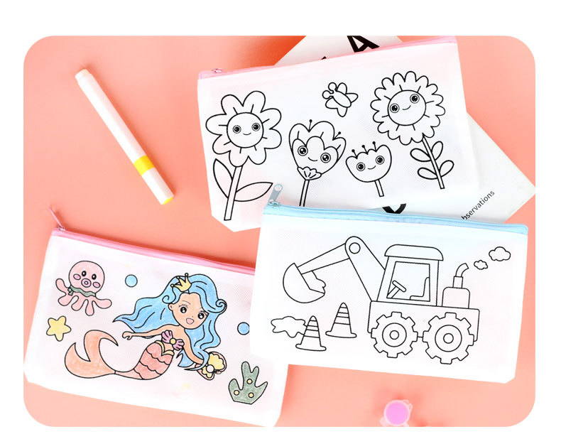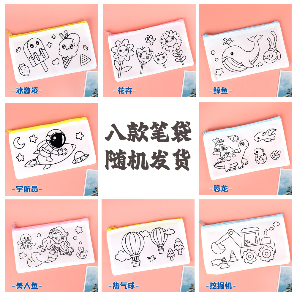 부직포 연필 케이스 DIY 낙서 유치원 초등학교 빈 문구 창조적 인 만화 그림 수제 어린이 색상 채우기스토어 가기