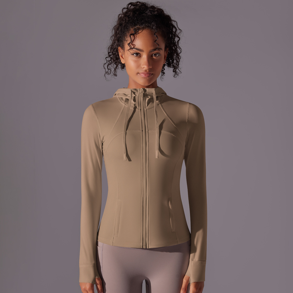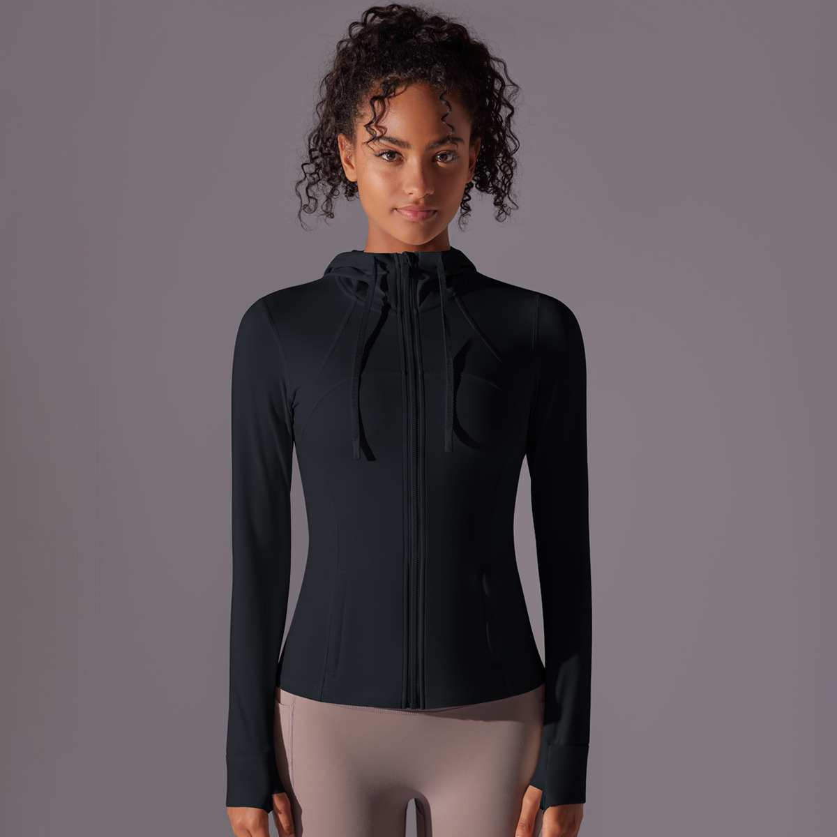새로운 벌거 벗은 후드가 달린 요가 옷 꽉 긴 소매 스포츠 캐주얼 탑 여성을위한 빠른 건조 달리기 지퍼 피트니스 재킷