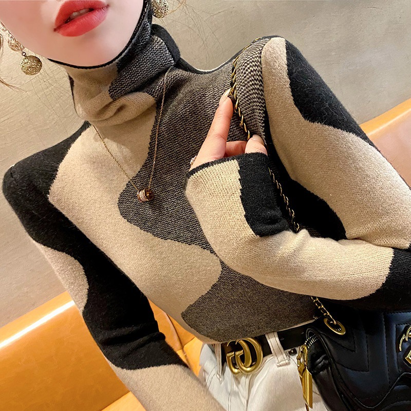 터틀넥 스웨터 여성의 2024 새로운 가을과 겨울베이스 셔츠 고급 서양식 컬러 매칭 폭발성 겨울 니트 인테리어스토어 가기
