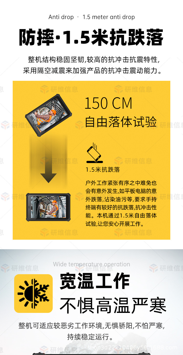 加固性能 1.2m开机状态跌落+6级防尘+7级防水