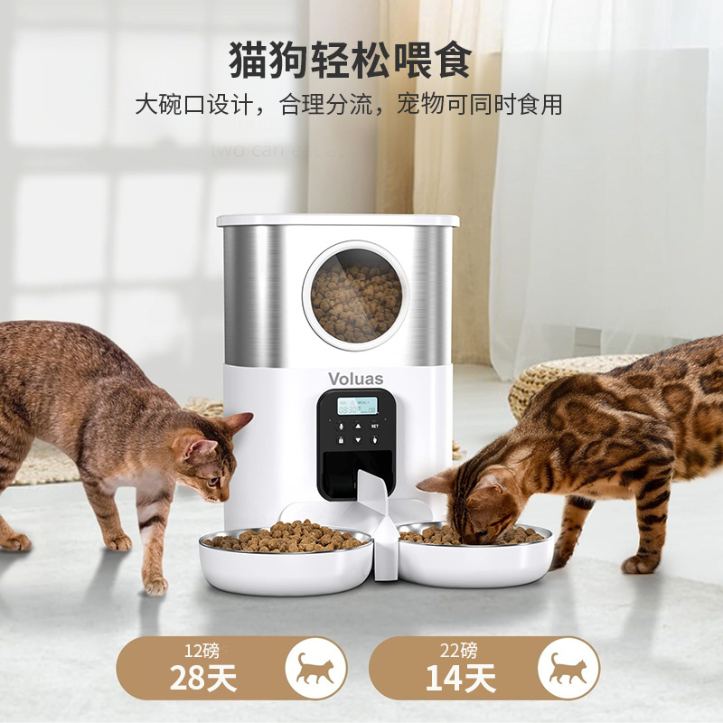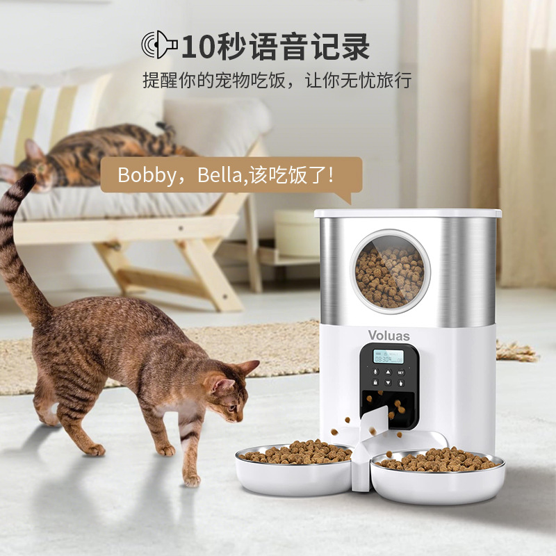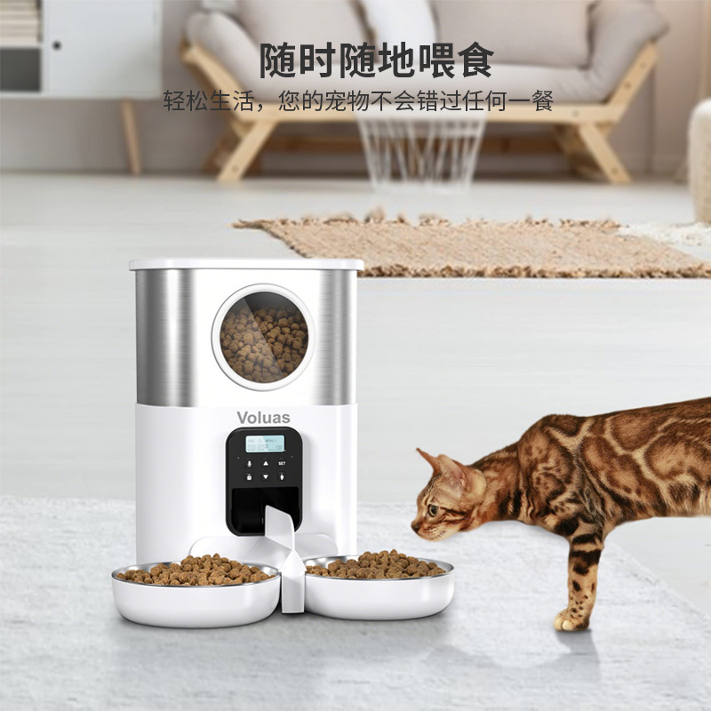 제조업체 지능형 애완동물 급식기 고양이와 개 사료 이중 급식구 타이머 설정 자동 급식기 대용량 방습스토어 가기