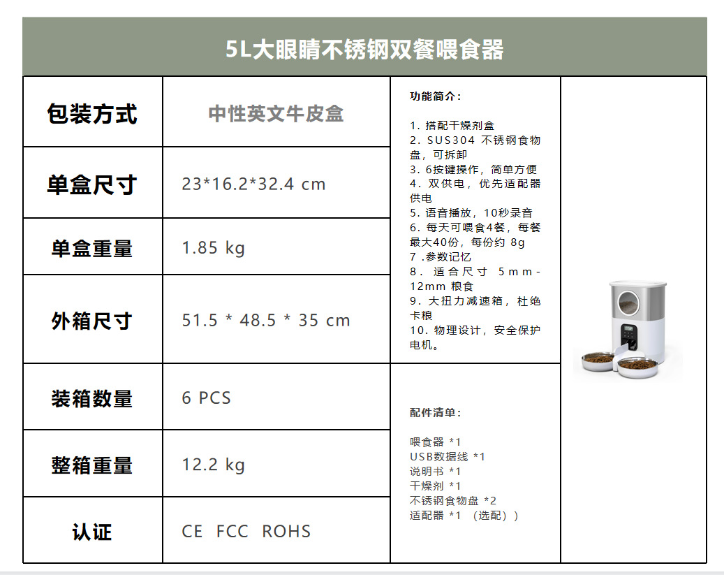 제조업체 지능형 애완동물 급식기 고양이와 개 사료 이중 급식구 타이머 설정 자동 급식기 대용량 방습