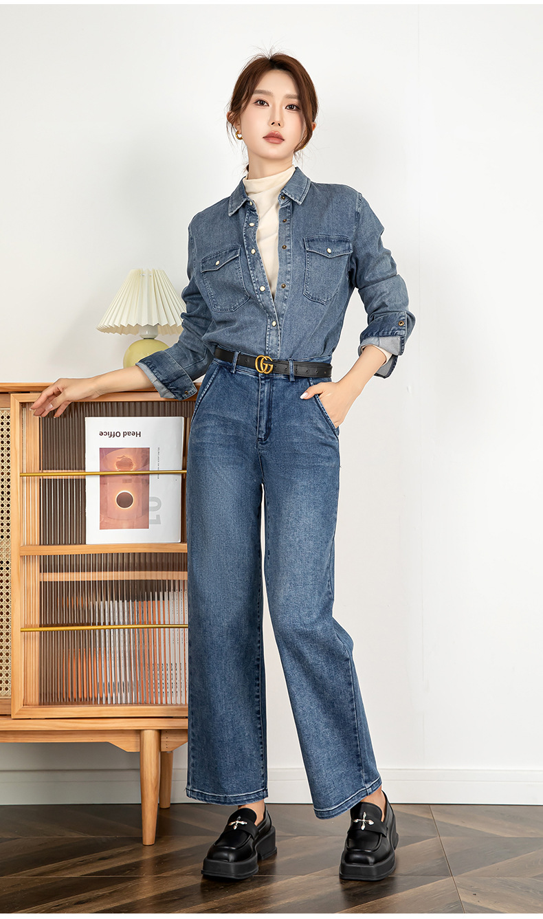 클리어런스 진바지 2025년 가을 신상 슬림핏 루즈핏 하이웨이스트 스트레이트 9부 바지 20907J스토어 가기