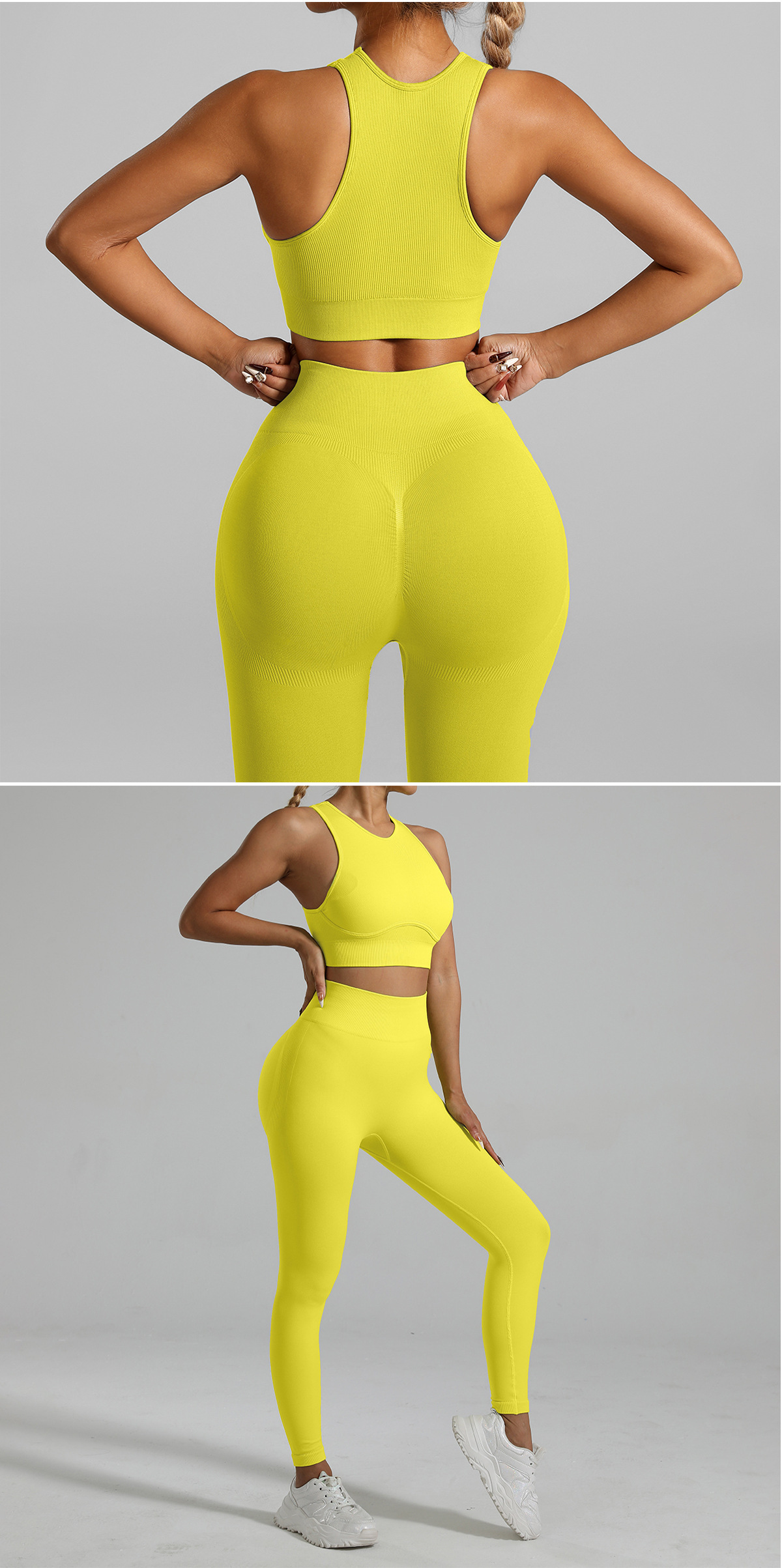 원활한 스레드 복부 텐터 높은 허리 아름다운 허리 요가 세트 슬리밍 달리기 스포츠 세트 여성의 빠른 건조 아름다운 등 피트니스 착용