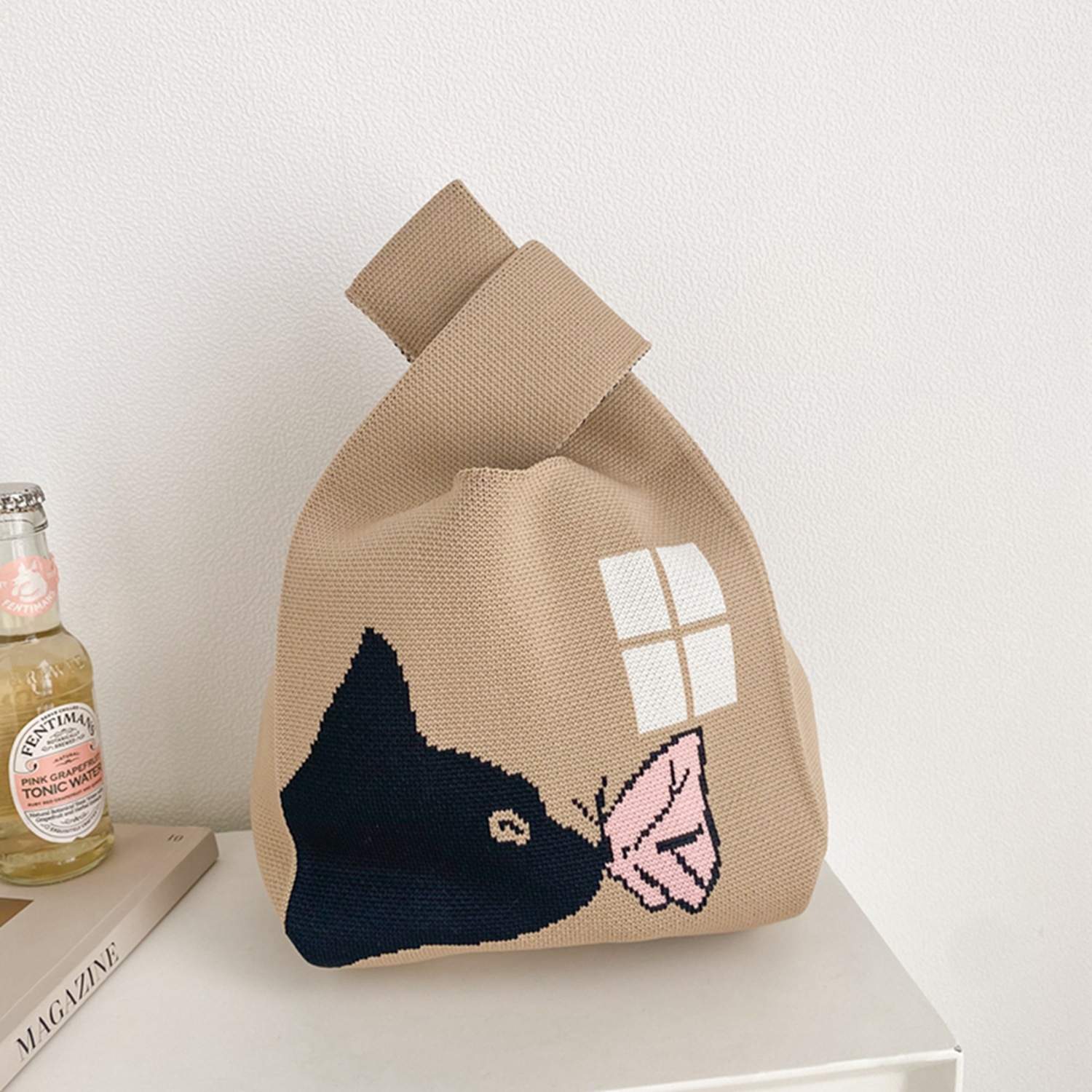 인터넷 축하 꽃 만화 니트 가방 일본과 한국 스타일 니트 어깨 가방 언더암 가방 새로운 스타일 여성 가방 토트 백스토어 가기