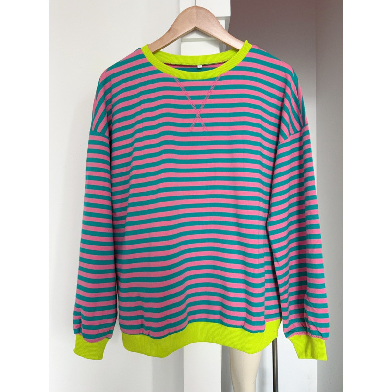 아마존 2024 유럽과 미국 국경 대외 무역 가을과 겨울 새로운 컬러 스트라이프 크루 넥 느슨한 스웨터 스웨터 여성스토어 가기