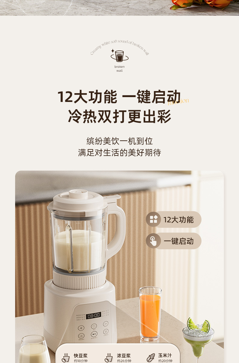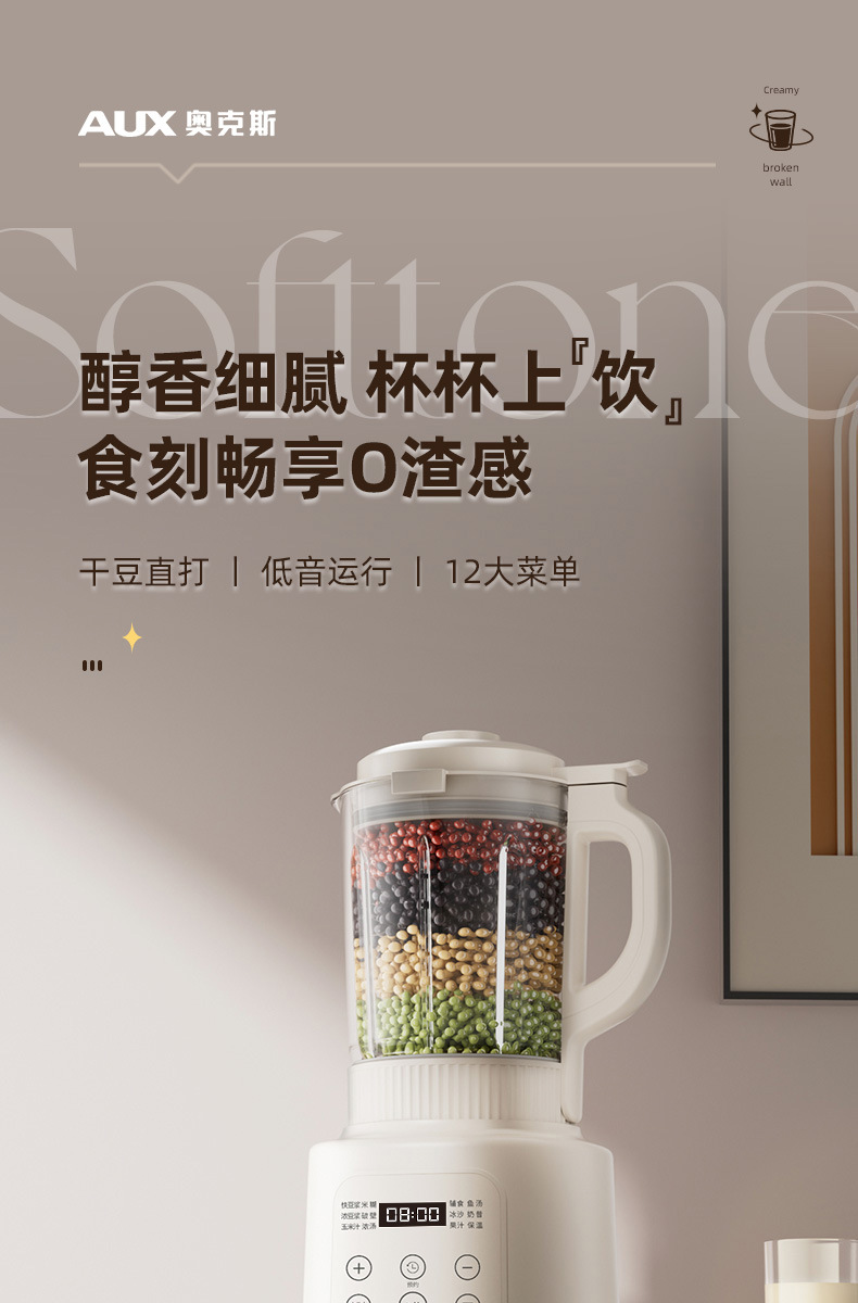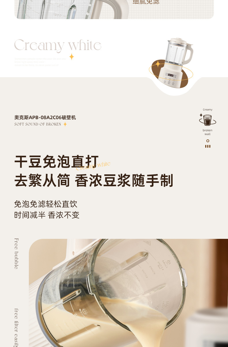 오크 벽 속보 기계 가정용 요리 기계 콩 우유 추출기 쥬서 자동 작은 다기능 슬래그 정적 조명 톤스토어 가기