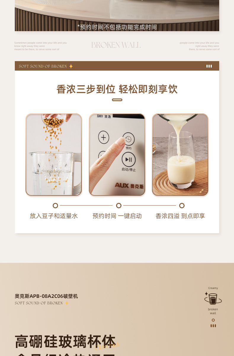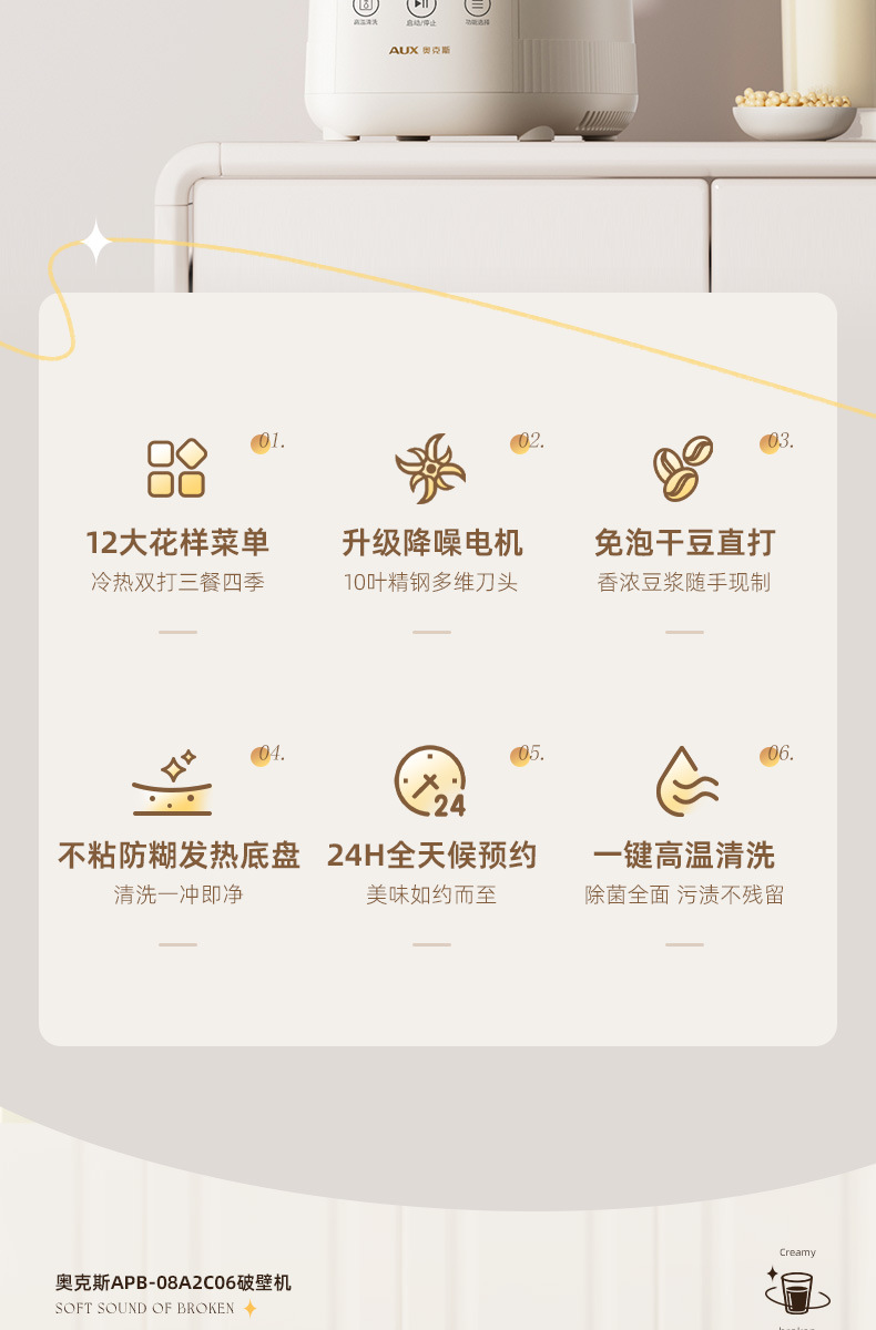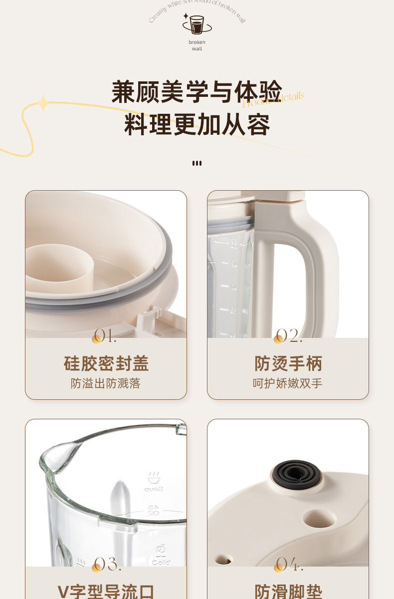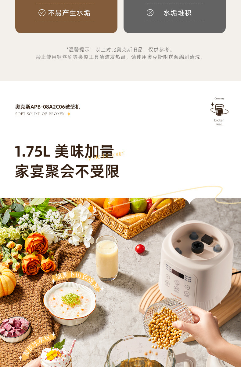 오크 벽 속보 기계 가정용 요리 기계 콩 우유 추출기 쥬서 자동 작은 다기능 슬래그 정적 조명 톤스토어 가기