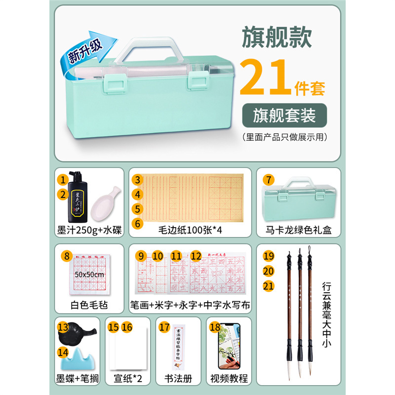 • 붓글씨 21종 세트 [녹색 수납박스 + 로우엣지 종이 400장 + 잉크 반파운드 포함]