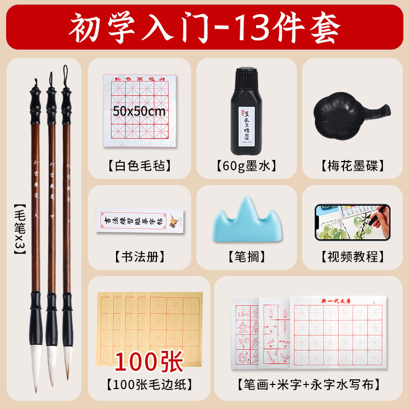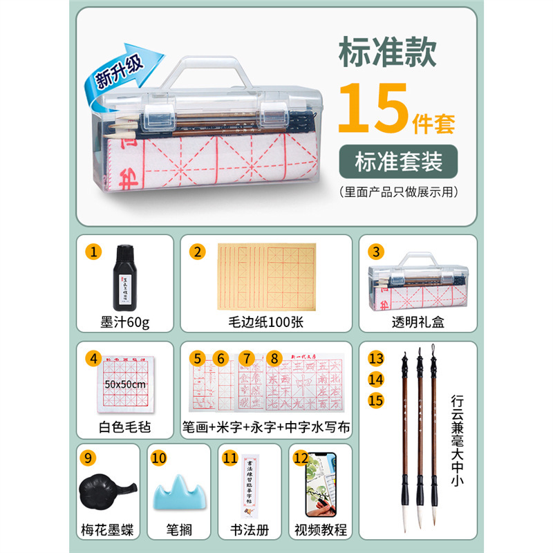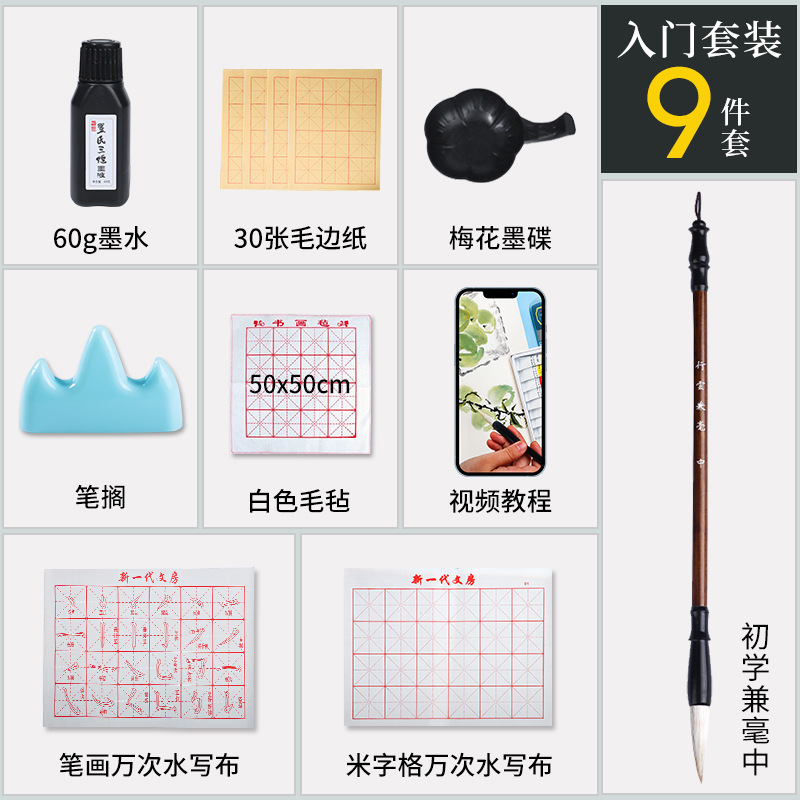 브러시 서예 세트 초심자 세트 초등학생 브러시, 잉크, 종이 및 잉크 스톤의 4 가지 보물 초보자 세트