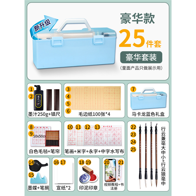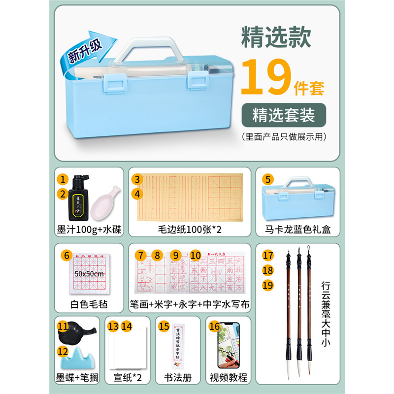 • 붓서예 19종 세트 [파란색 수납박스 + 로우엣지지 200장 + 라이스페이퍼 포함]