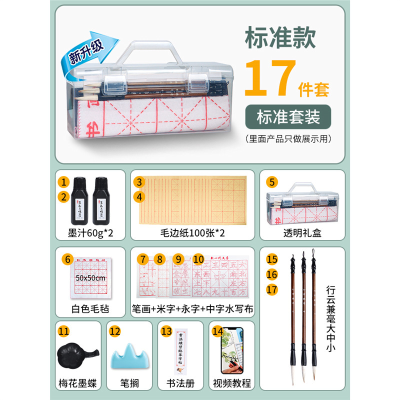 • 붓글씨 17종 세트 [보관함 + 원시 가장자리 종이 200장 포함]