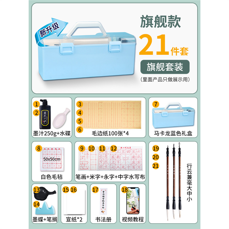 • 붓글씨 21종 세트 [파란색 수납함 + 로우 엣지 종이 400장 + 잉크 반파운드 포함]