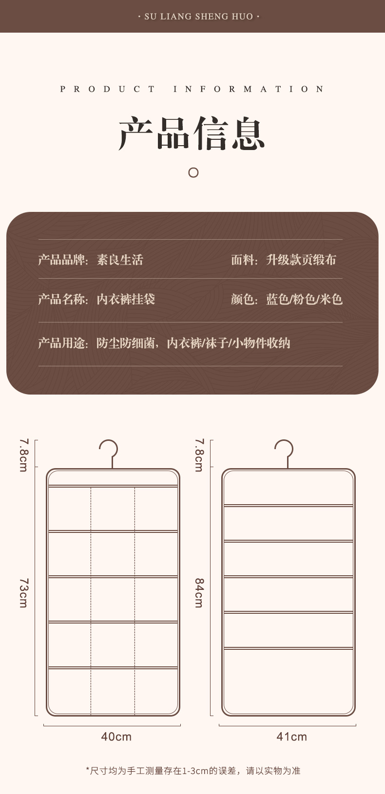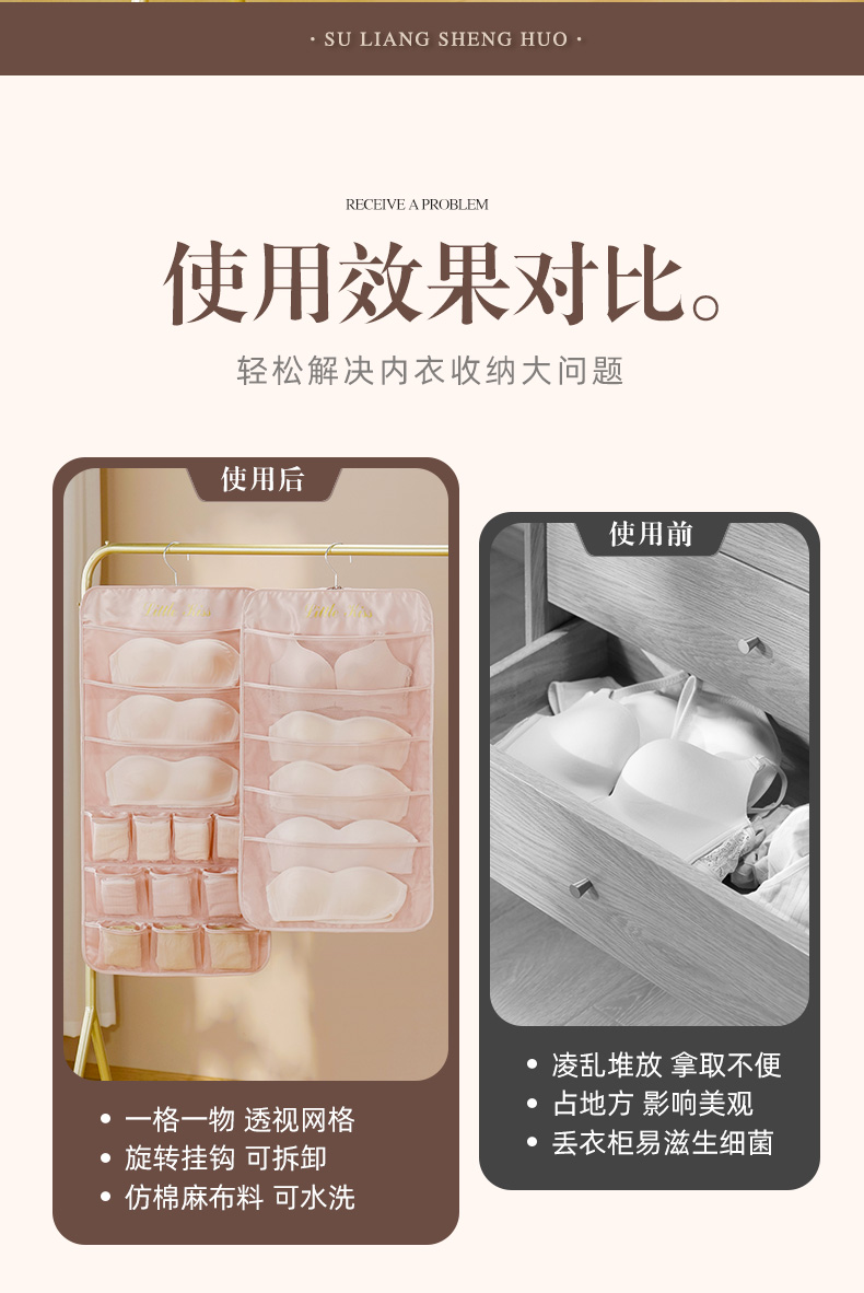 속옷 보관 가방 벽에 매달려 양면 보관 가방 속옷 브래지어 양말 핏 랙 옷장 교수형