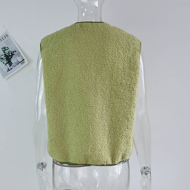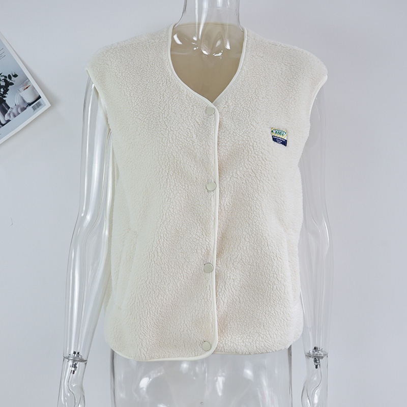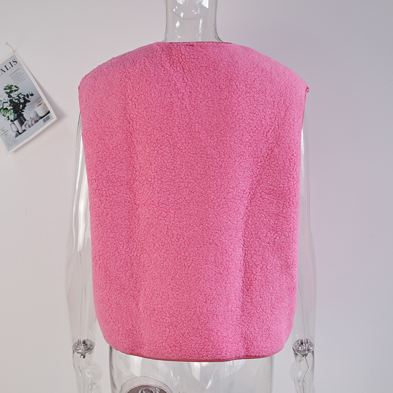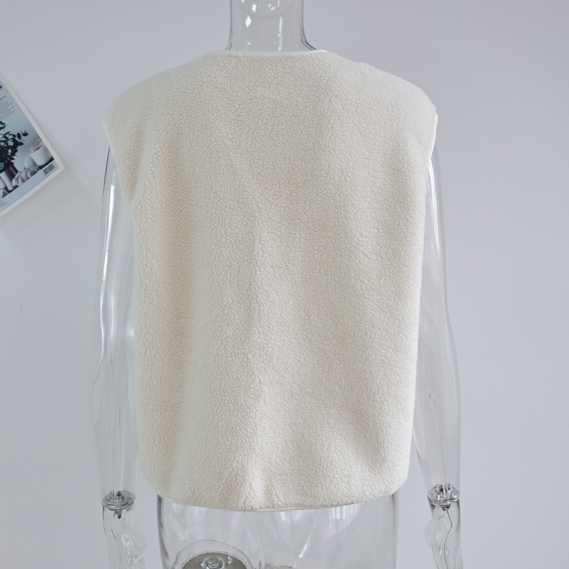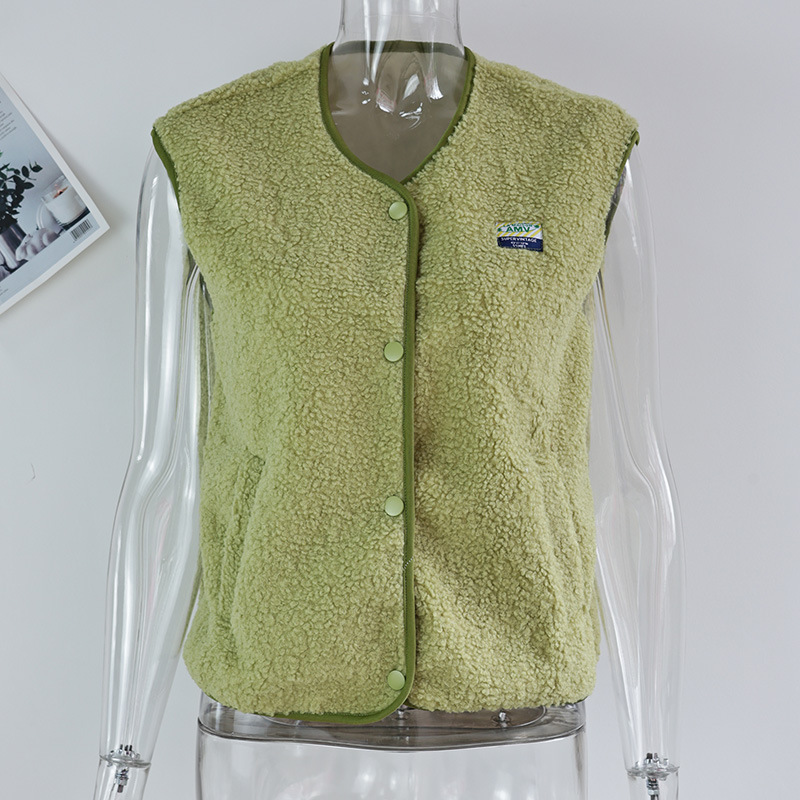 민소매 마오 쇼트 조끼 2024 유럽 및 미국 국경 패션 여성의 느슨한 싱글 브레스트 조끼 재킷