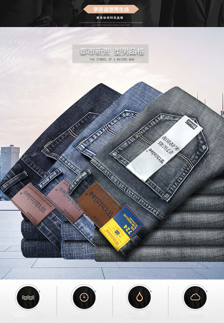 봄과 가을 두꺼운 스트레치 청바지 남성 비즈니스 스트레이트 루즈 올 매치 캐주얼 바지 남자 바지 국경 간 대외 무역스토어 가기
