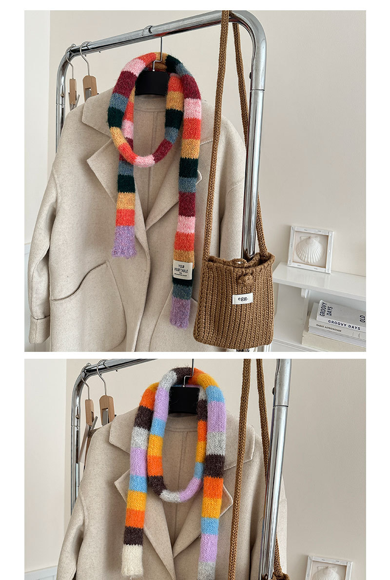 니트 울 스카프 여성용 2025 신상 도파민 컬러 얇고 긴 스트립 배색 스카프 트렌디 장식 넥타이