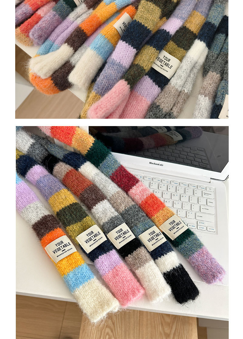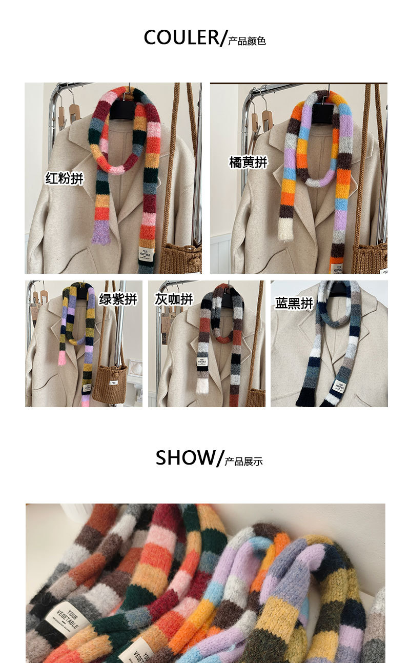 니트 울 스카프 여성용 2025 신상 도파민 컬러 얇고 긴 스트립 배색 스카프 트렌디 장식 넥타이스토어 가기