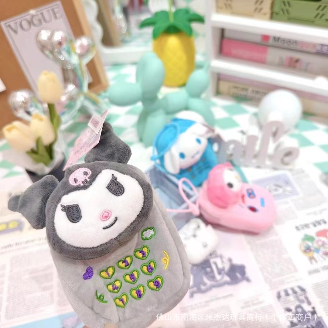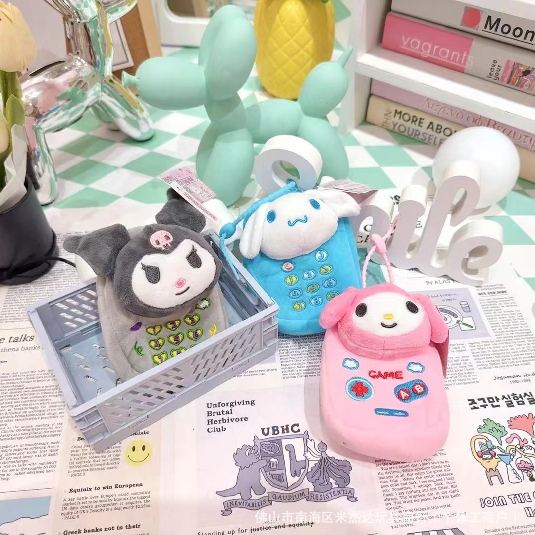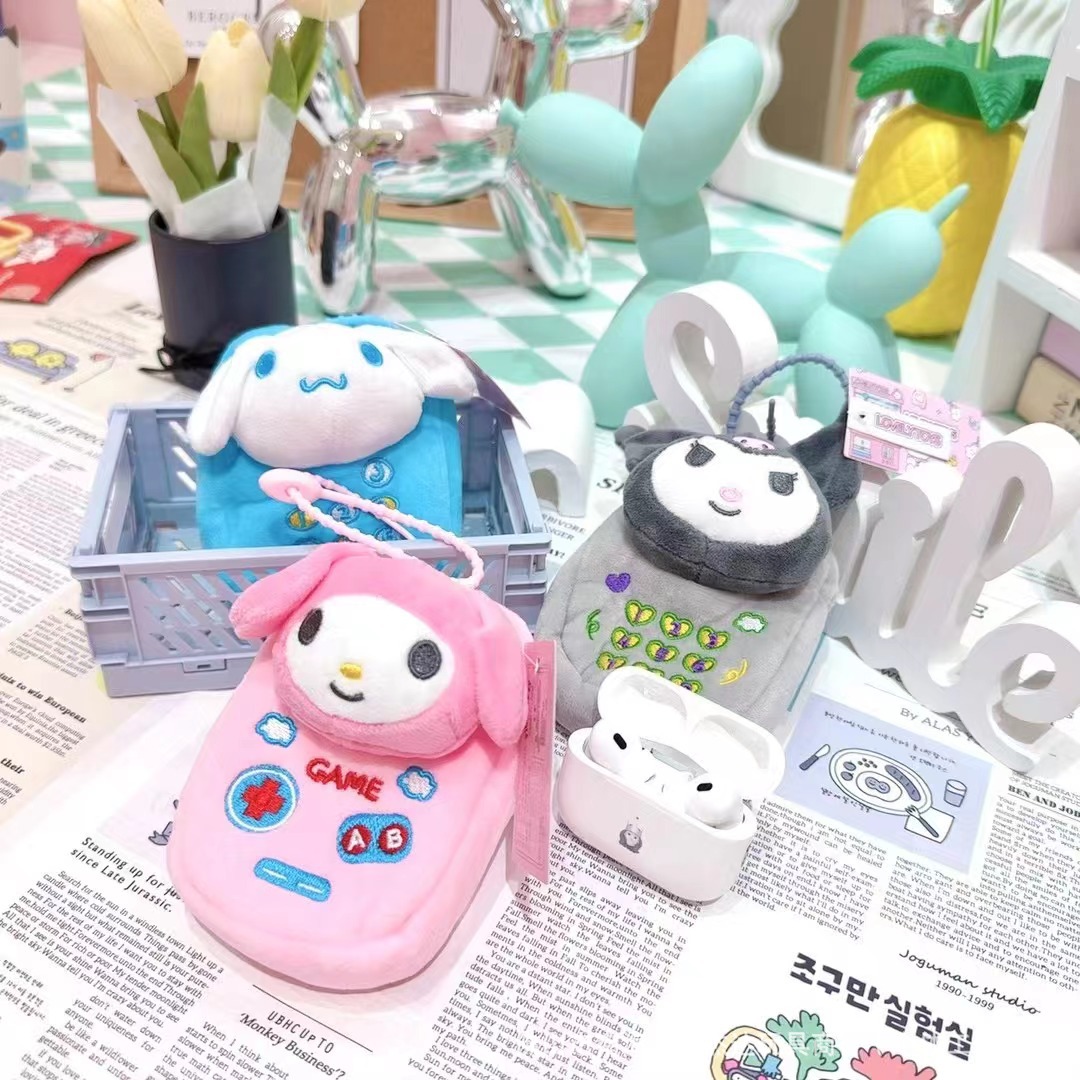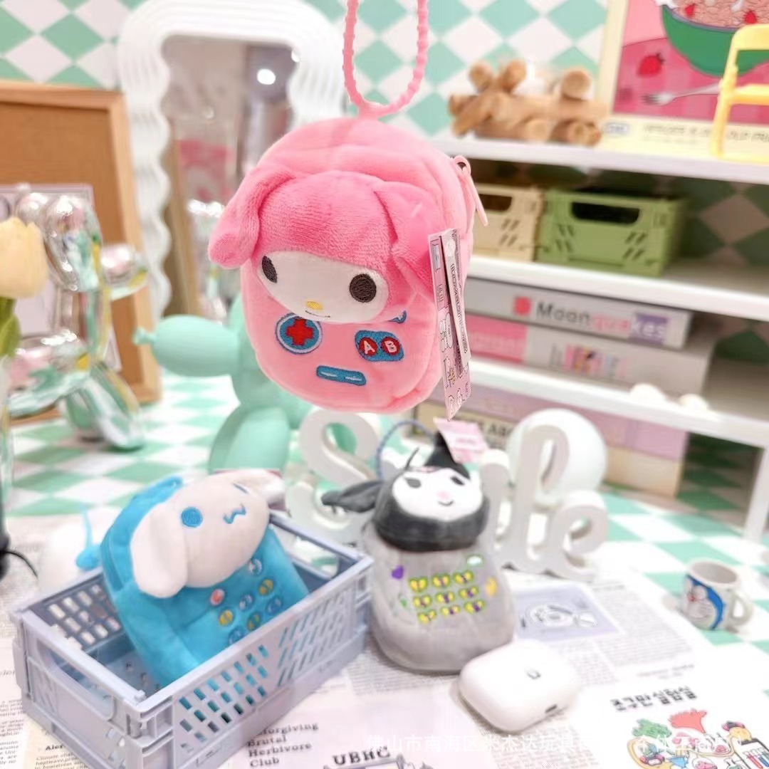 재고 일본 헤드셋 산리오 인형 쿨로 미 멜로디 봉제 장난감 키 체인 펜던트 캐치 베이비 머신