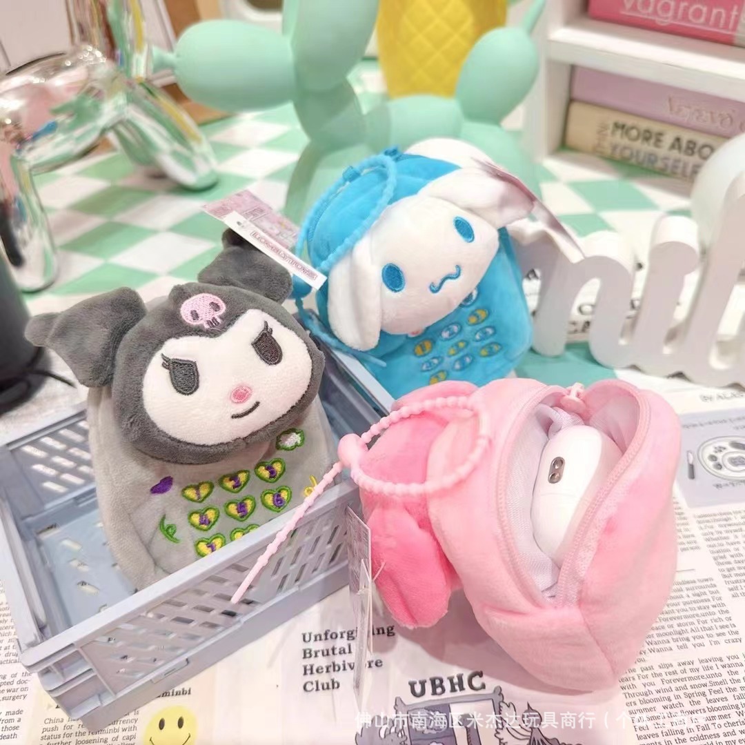 재고 일본 헤드셋 산리오 인형 쿨로 미 멜로디 봉제 장난감 키 체인 펜던트 캐치 베이비 머신스토어 가기