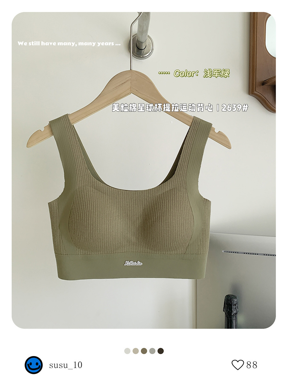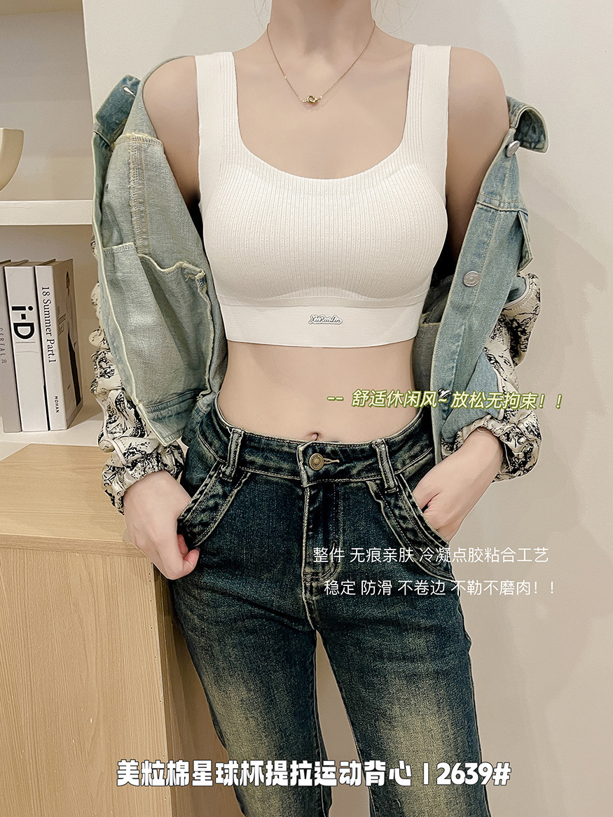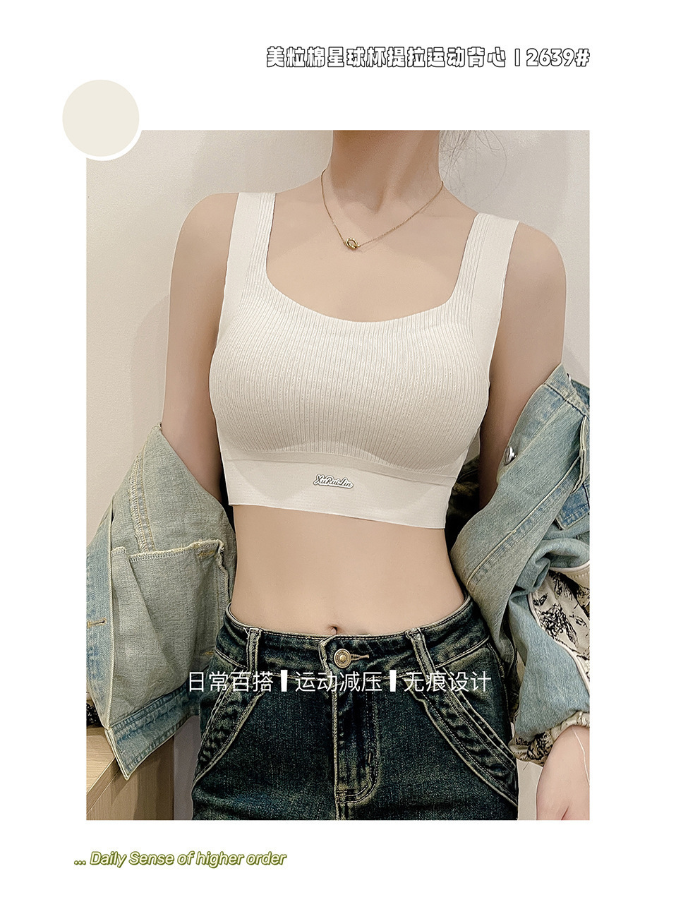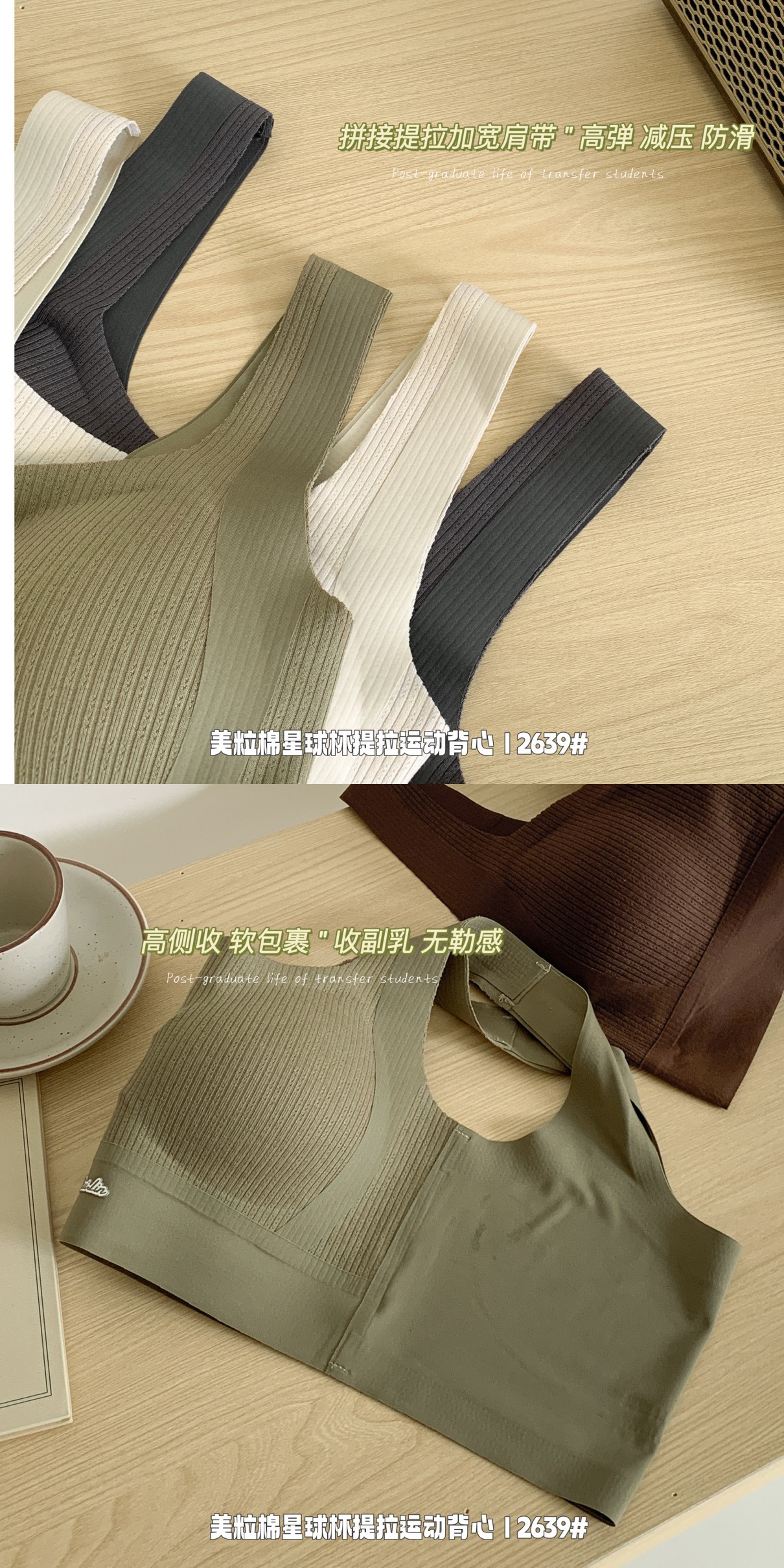 歌妮儿无痕运动2639美粒棉星球杯提拉运动背心套头固定不走位柔软