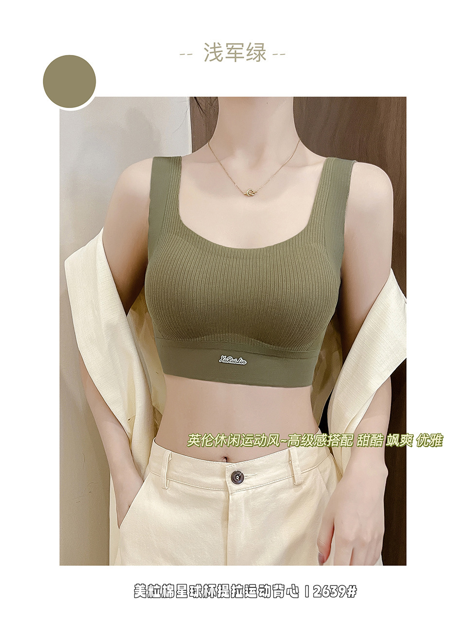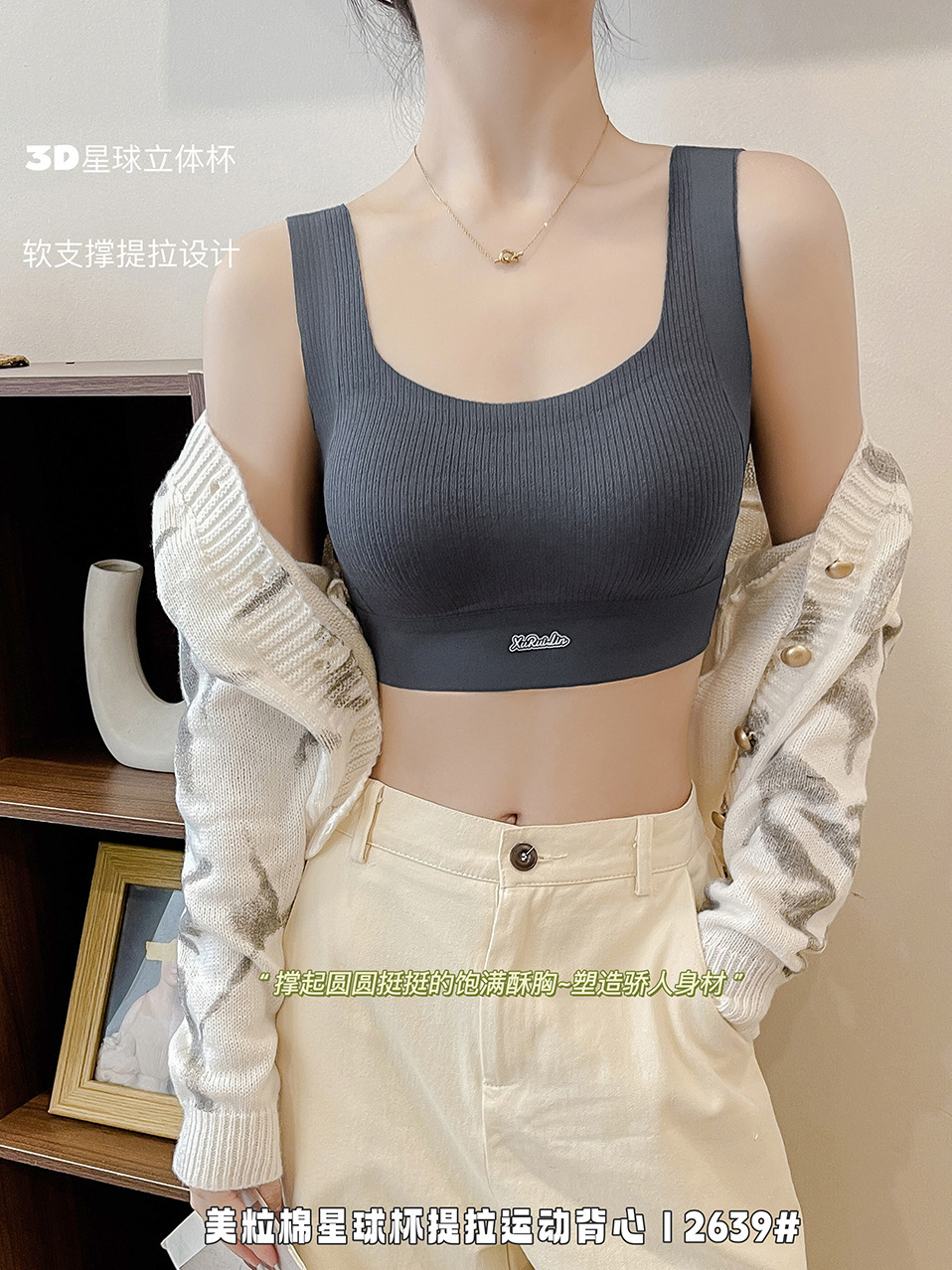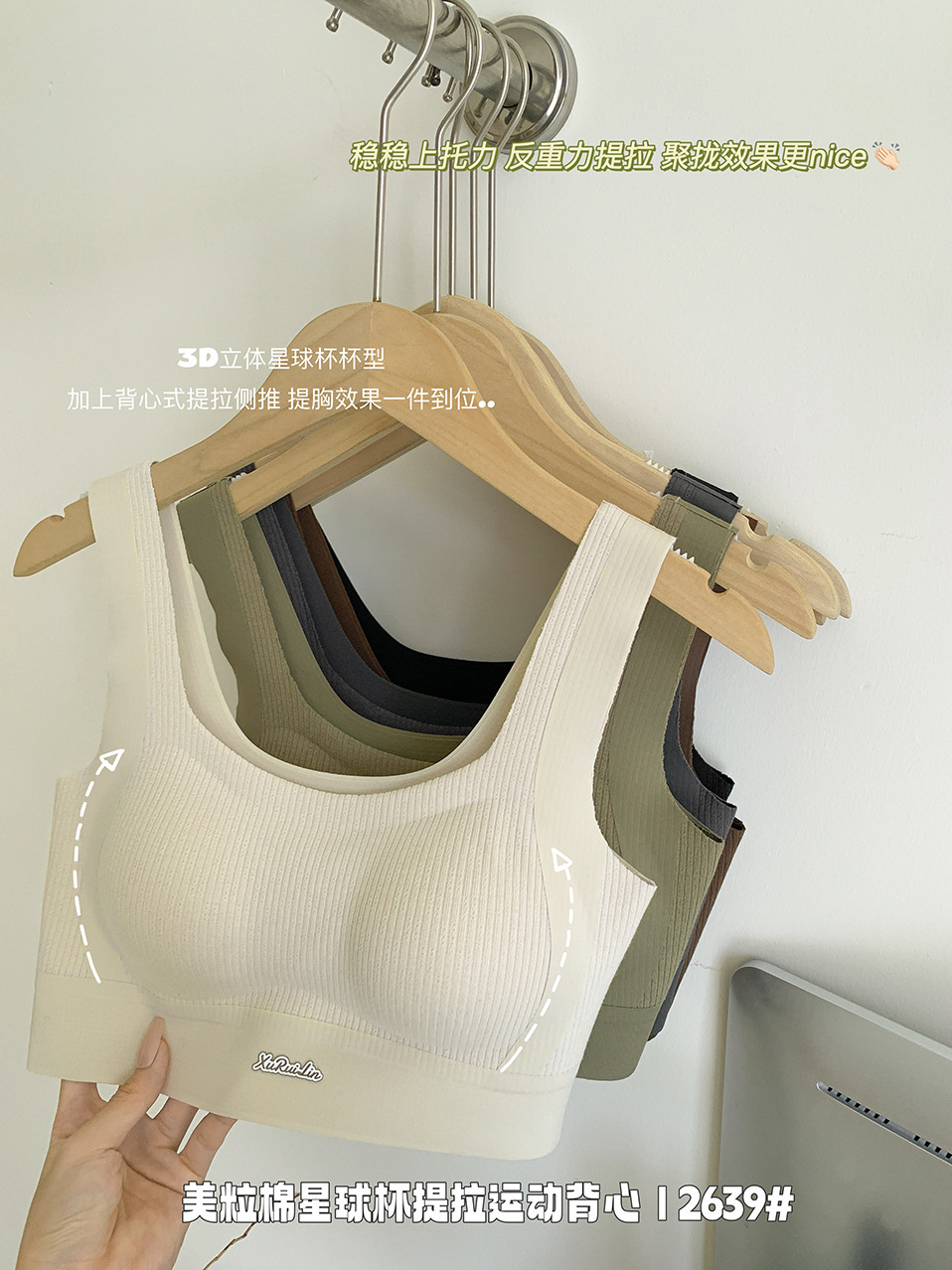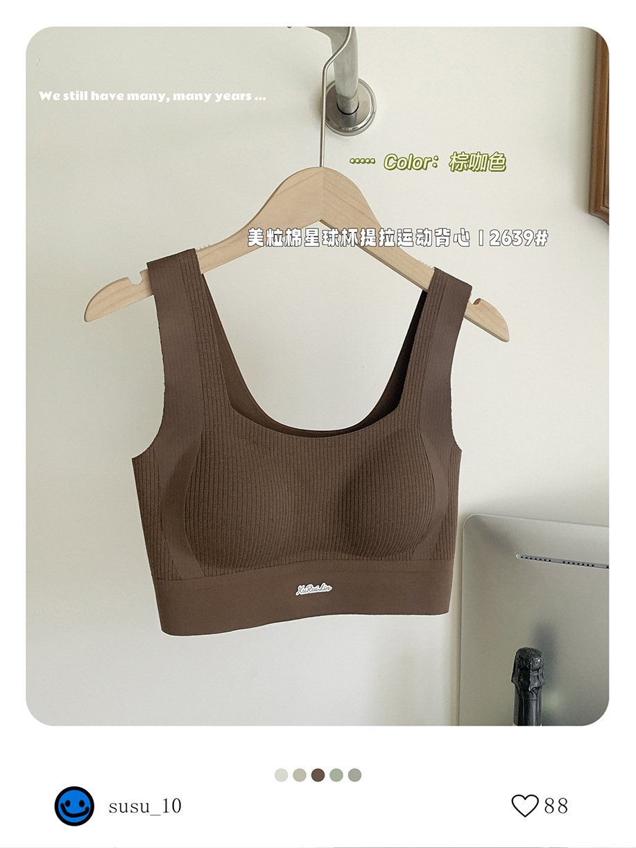 歌妮儿无痕运动2639美粒棉星球杯提拉运动背心套头固定不走位柔软