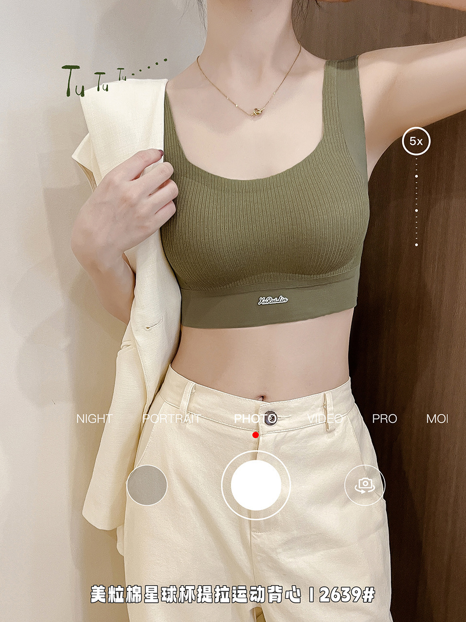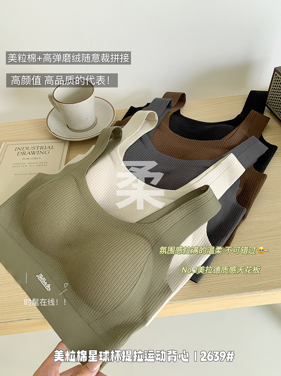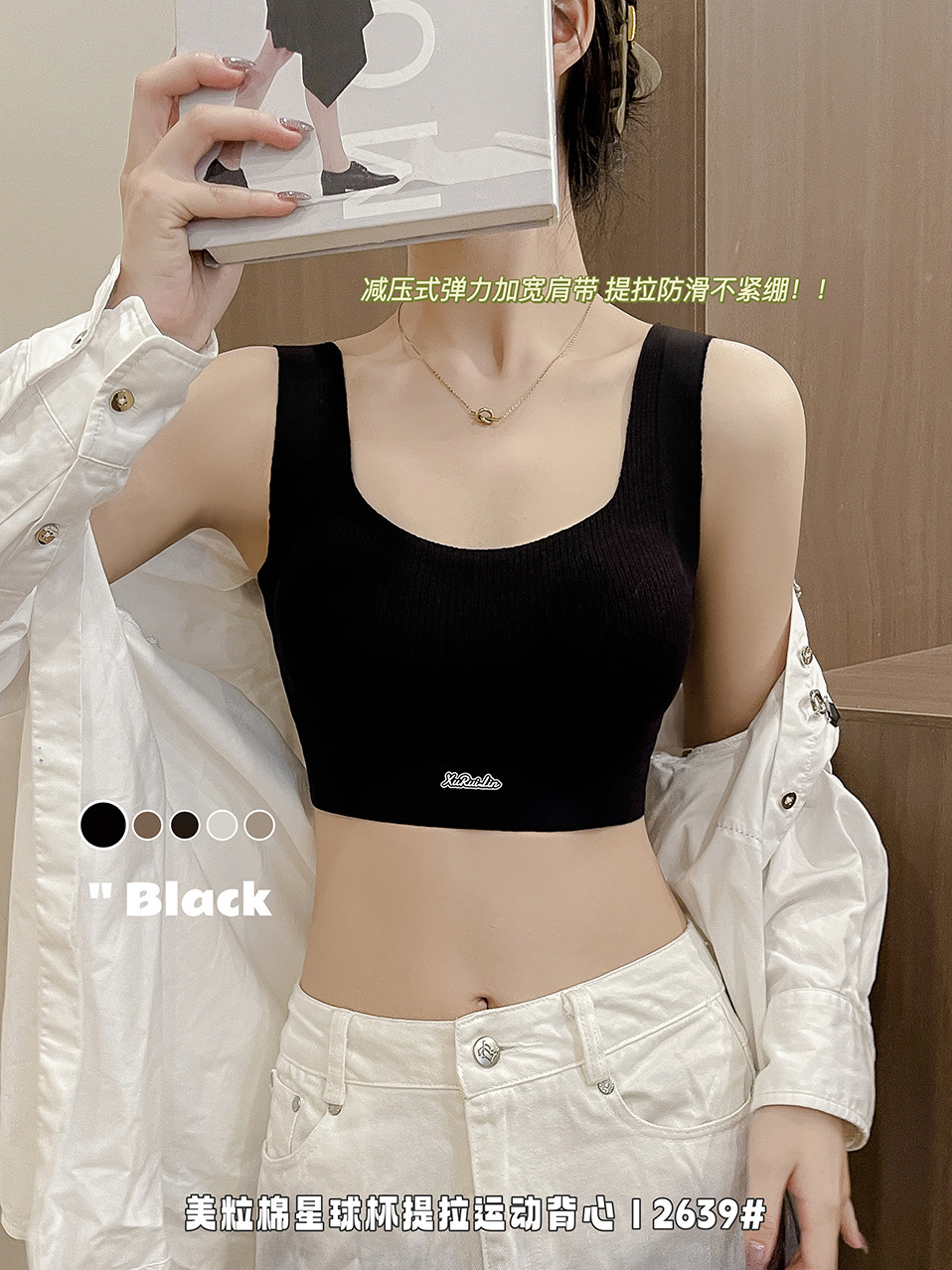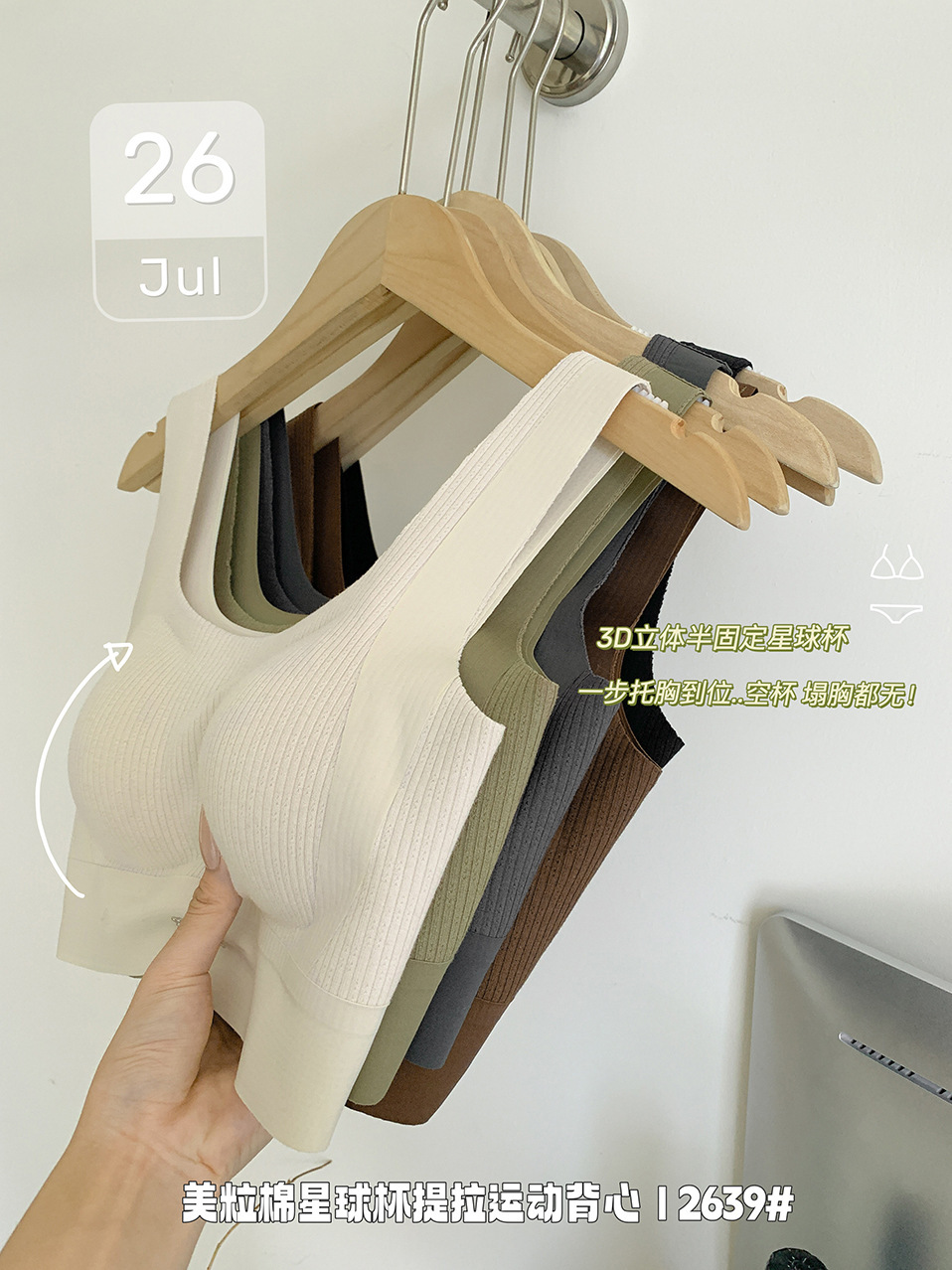 歌妮儿无痕运动2639美粒棉星球杯提拉运动背心套头固定不走位柔软