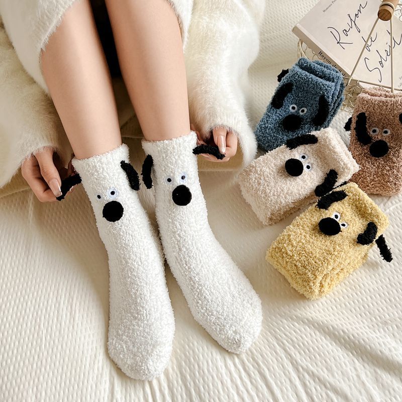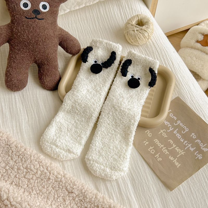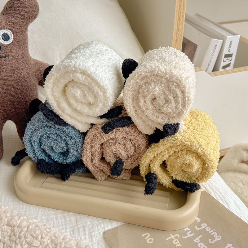 산호 벨벳 양말 여성 겨울 패딩 플러시 따뜻한 수면 양말 귀여운 만화 바닥 양말 및 스타킹 도매